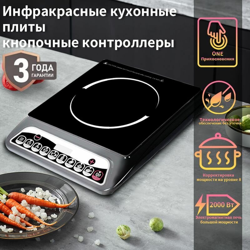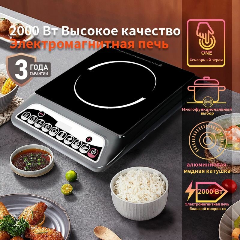 10 цен на Электрическая индукционная безимпульсная плитка настольная 1 конфорка, 2000 Вт