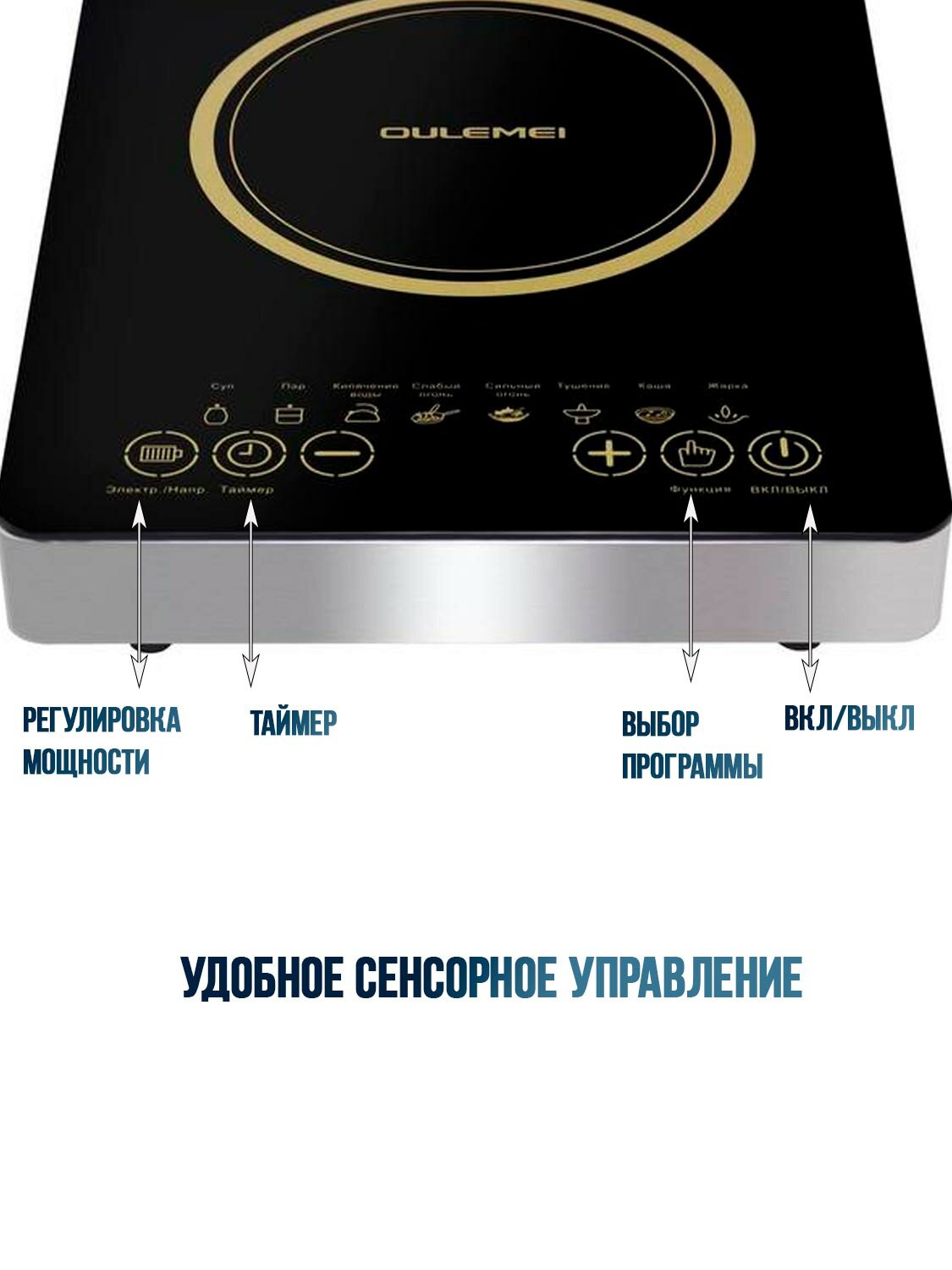 10 цен на Индукционная плита OULEMEI OLM-DCH003, 8 режимов, ЖК-дисплей, сенсорное управление, чёрная