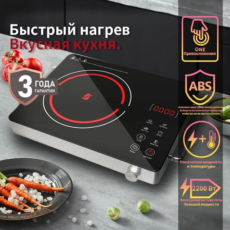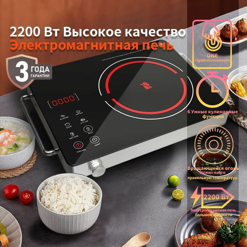 10 цен на Настольная плита, индукционная, стеклокерамическая, сенсорное управление, черная, 2200Вт