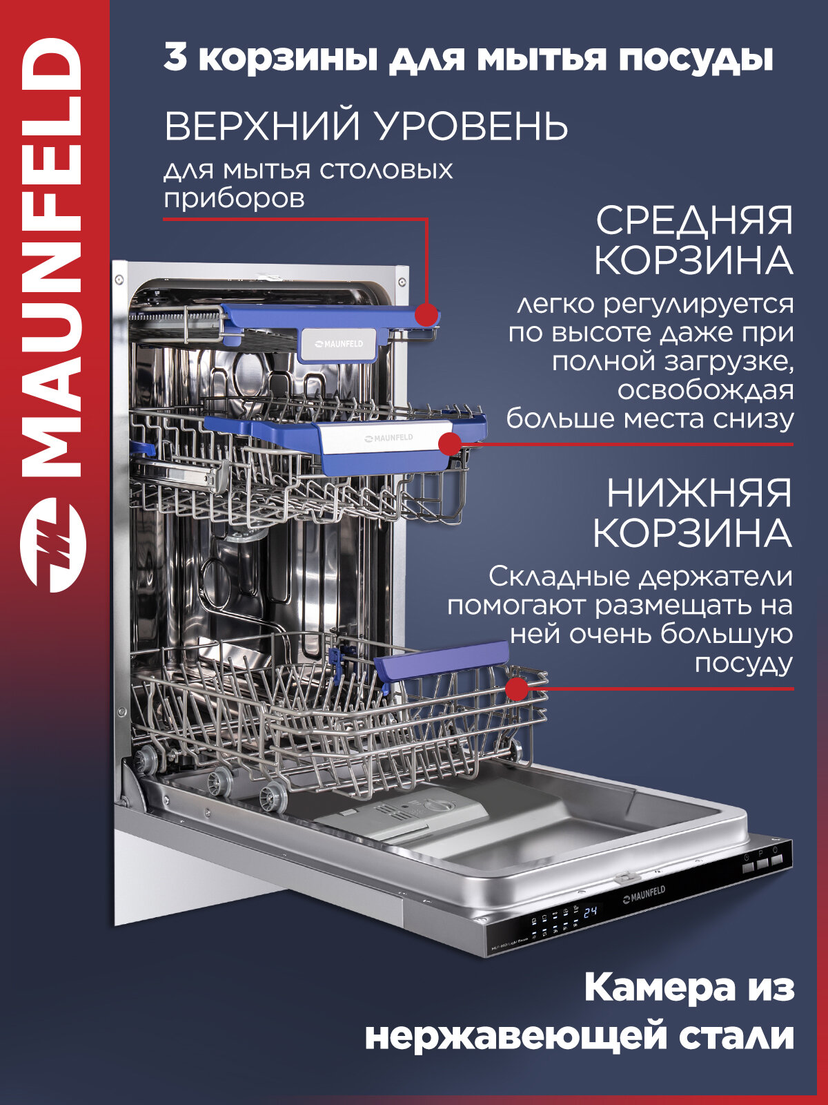 Отзывы на Посудомоечная машина MAUNFELD MLP-083I Light Beam, узкая, 10 комплектов посуды, 5 программ