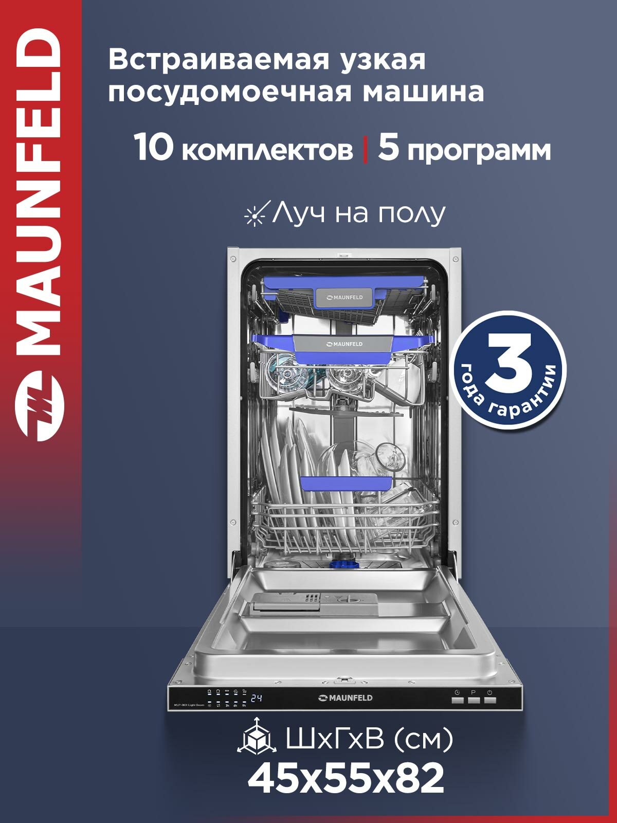 Посудомоечная машина MAUNFELD MLP-083I Light Beam, узкая, 10 комплектов посуды, 5 программ информация: