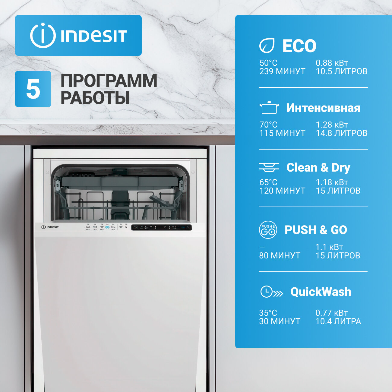 10 цен на Встраиваемая посудомоечная машина Indesit (45см), 9 комплектов, Половинная загрузка, быстрый цикл, отсрочка запуска