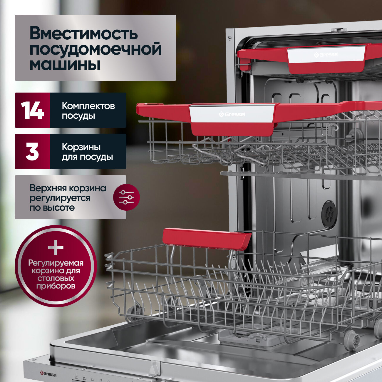 Посудомоечная машина Gressel UBM601, встраиваемая, загрузка 14 комплектов информация: