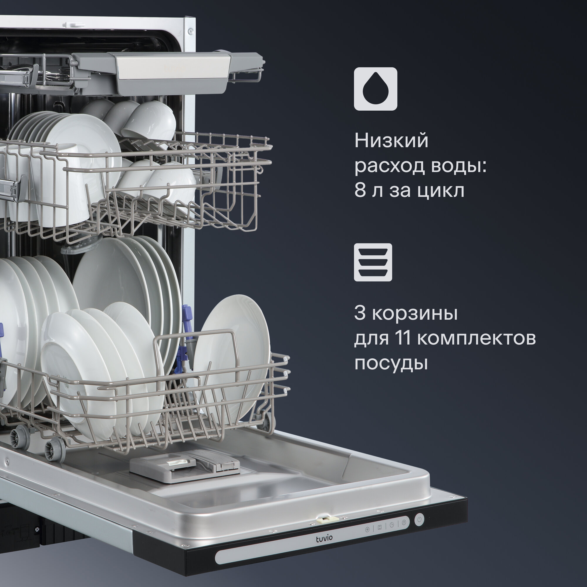Встраиваемая посудомоечная машина Tuvio DB43ET8LS1 информация: