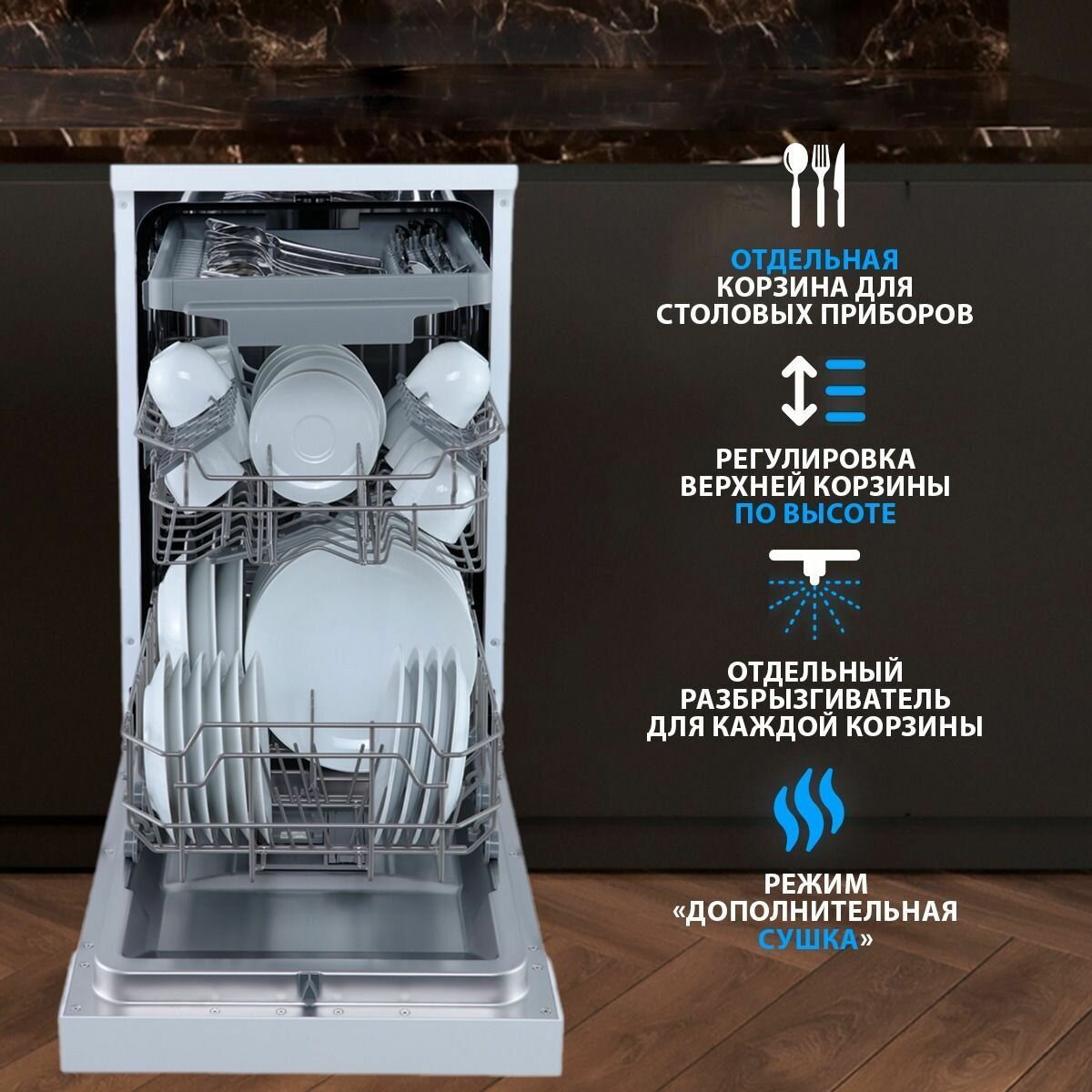 10 цен на Посудомоечная машина узкая 45 см, 3 корзины, 10 комплектов, дисплей, 6 программ, отсрочка запуска, регулируемая по высоте корзина, белый