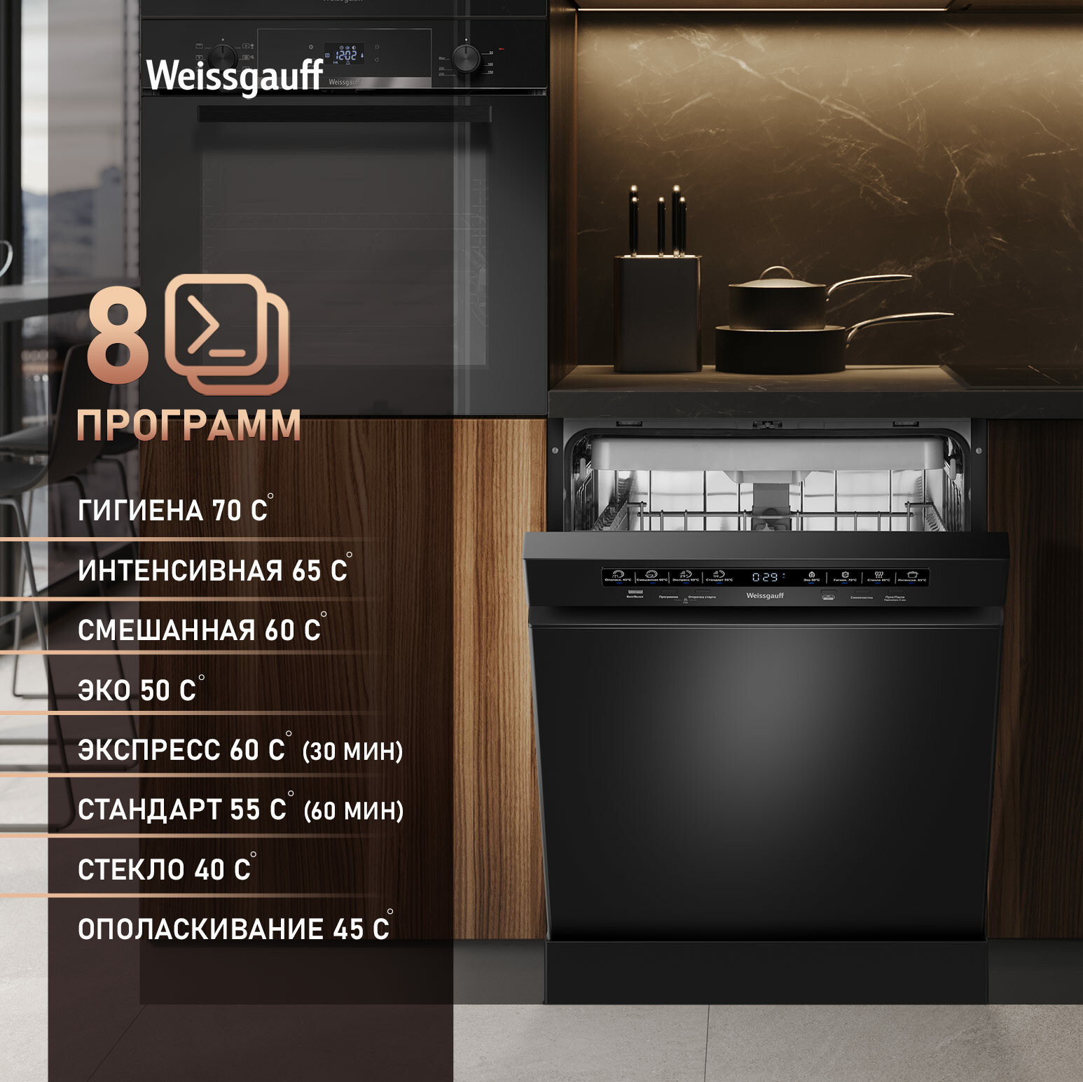 Посудомоечная машина Weissgauff DW 6039 Touch Dual Wash Black, До 15 комплектов посуды