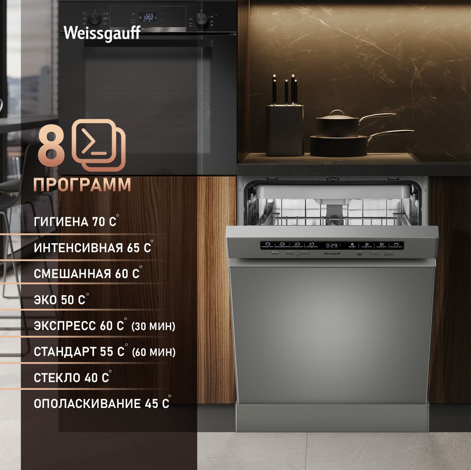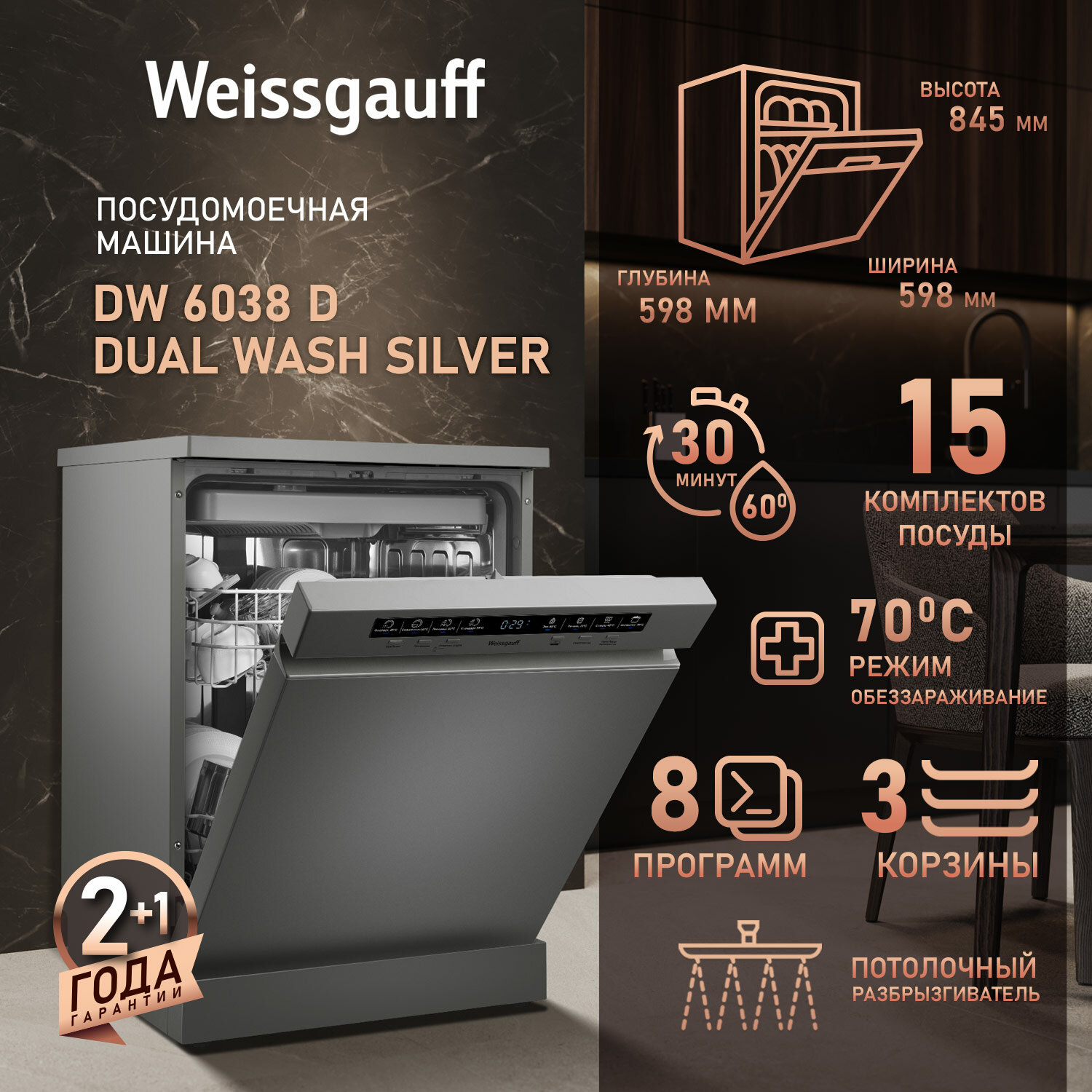 10 цен на Посудомоечная машина Weissgauff DW 6038 D Dual Wash Silver, Таймер до 24 часов