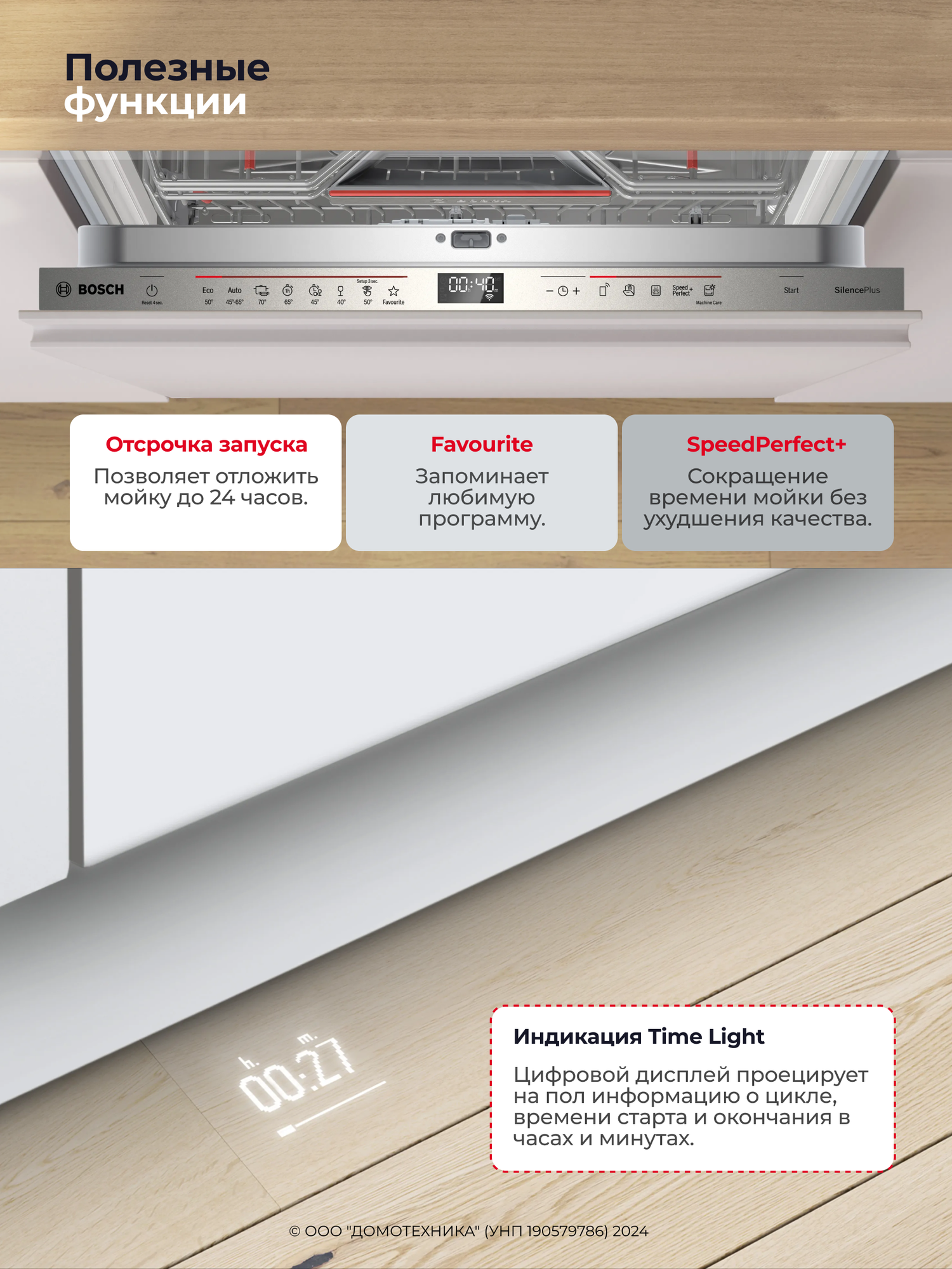 Встраиваемая посудомоечная машина BOSCH SMD6ECX00E, 60 см, Теплообменник