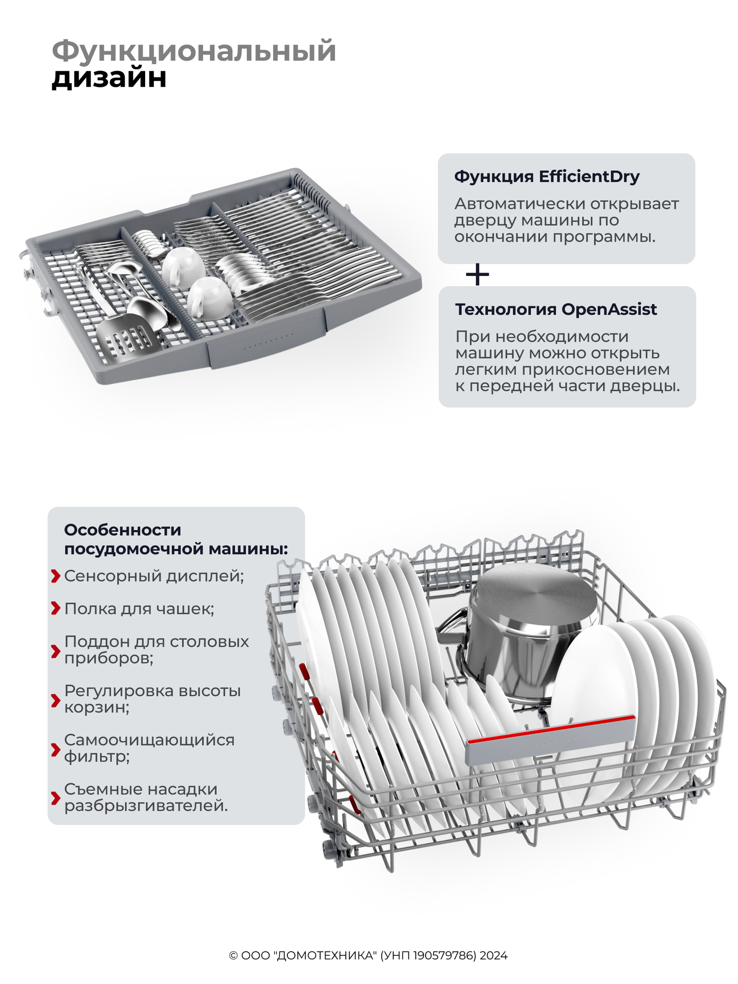 Встраиваемая посудомоечная машина BOSCH SMV4EVX15E, Теплообменник, Автоматическое открывание дверцы