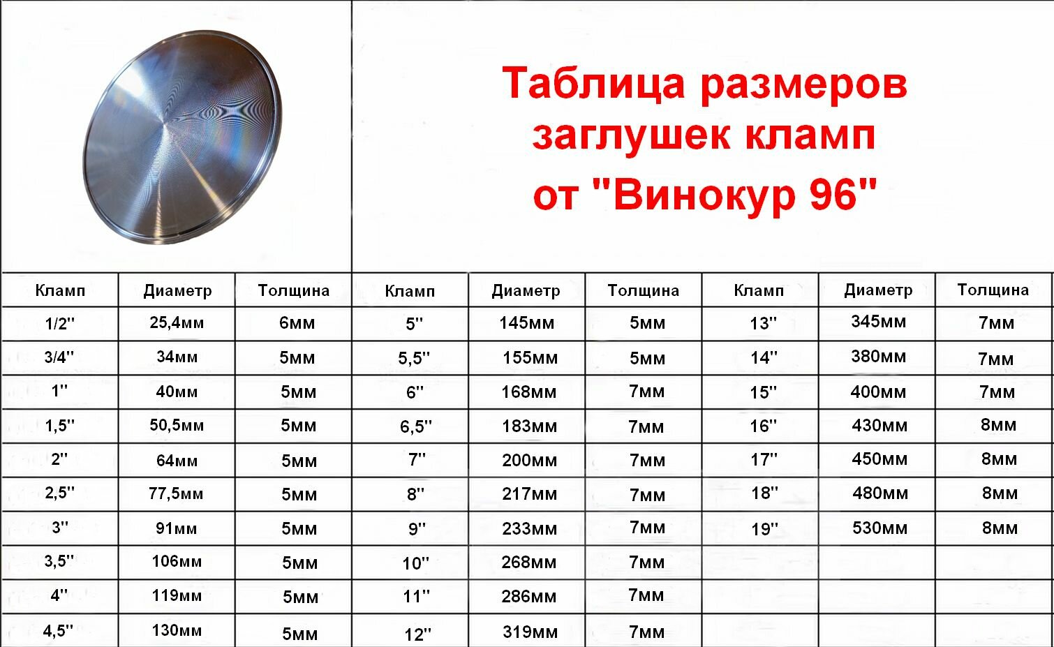 Заглушка кламп 18 дюймов информация: