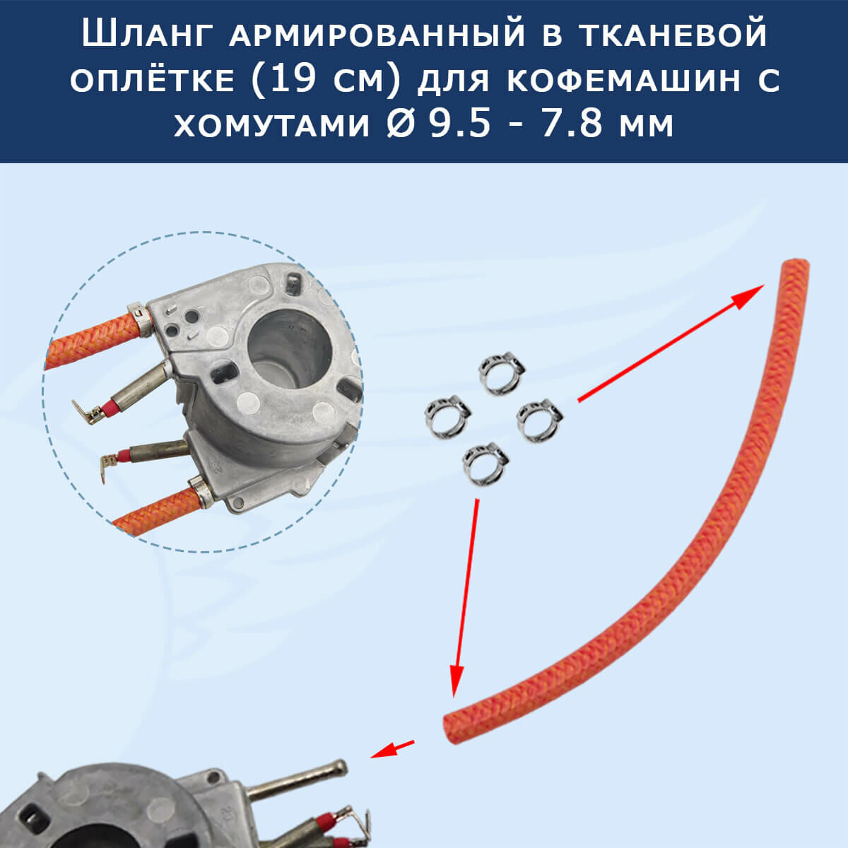 Шланг армированный в тканевой оплётке для кофемашин (19 см) с хомутами , 911245 информация: