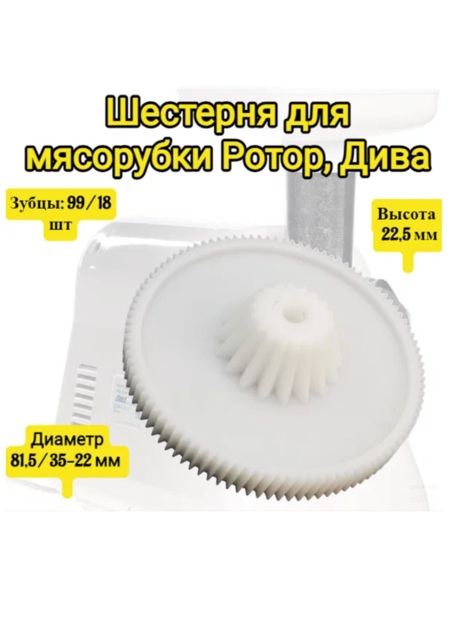Отзывы на Шестерня для мясорубки Ротор, Дива с конусом №1, диаметр 81, высота 22,5 мм, зубцы: 99 / 18 шт, зубцы: косые / прямые