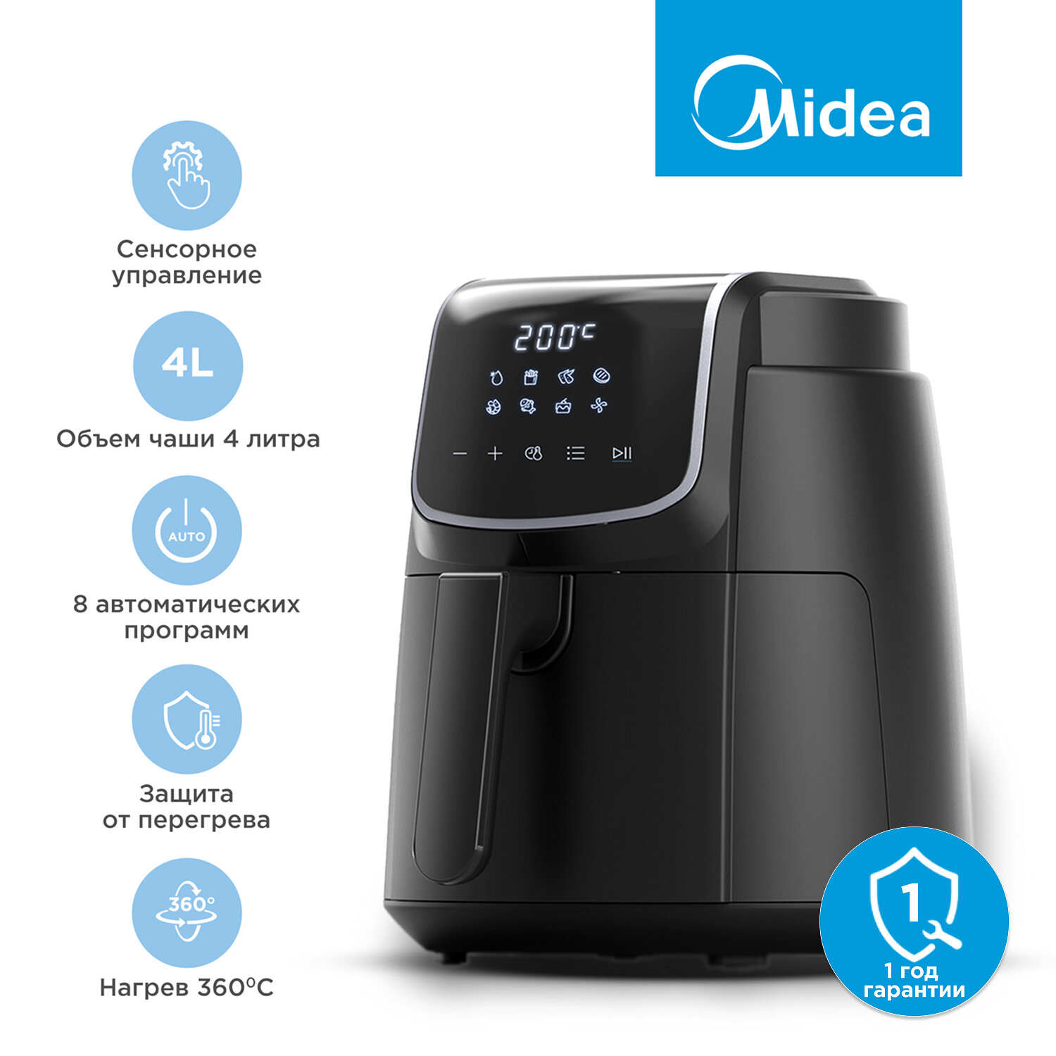 10 цен на Аэрогриль Midea MAF-1040, 1500 Вт, 4 литра, сенсорное управление, 8 автоматических программ, черный