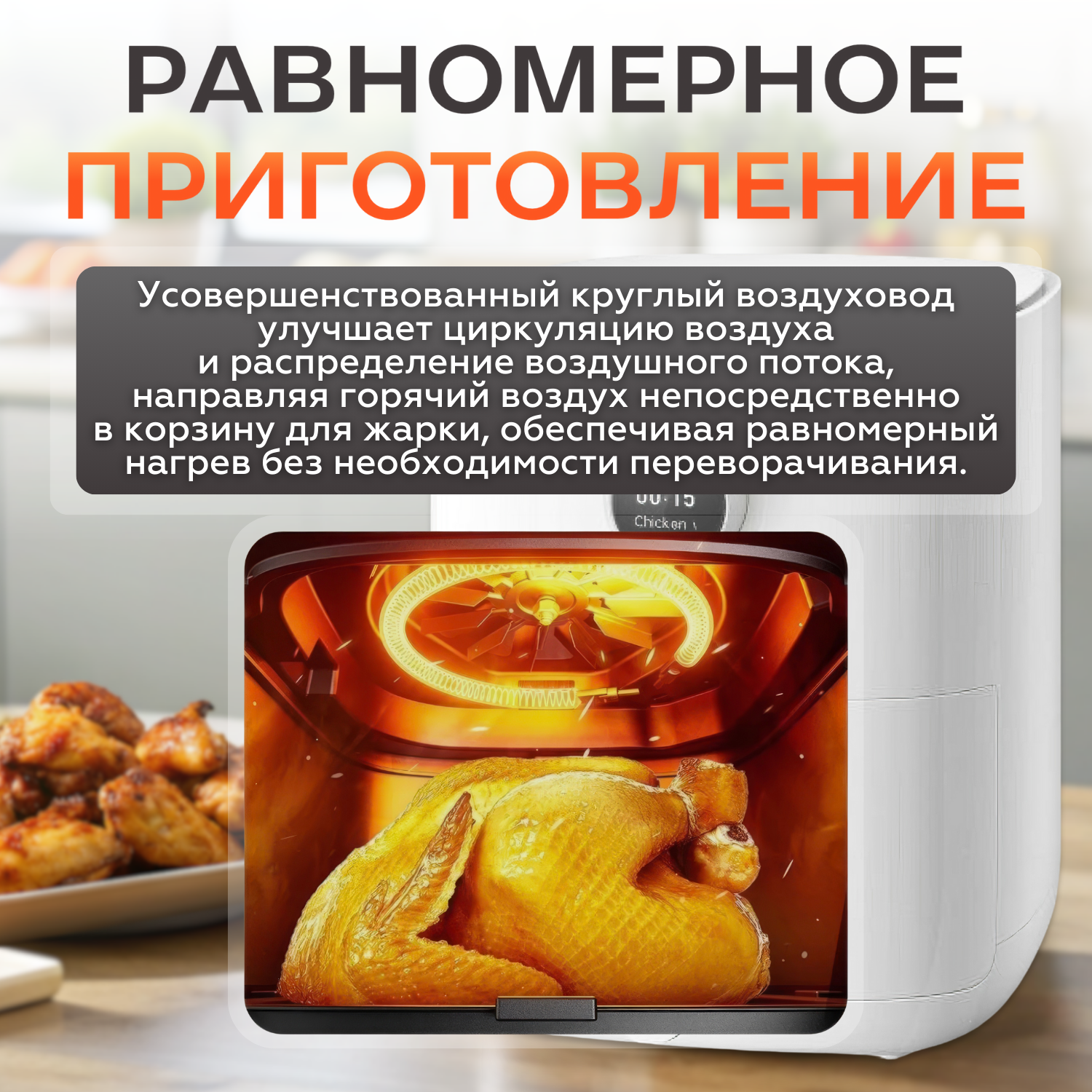 Аэрогриль Xiaomi Smart Air Fryer 6.5L, фритюрница (MAF10), меню на русском языке, белый, EU