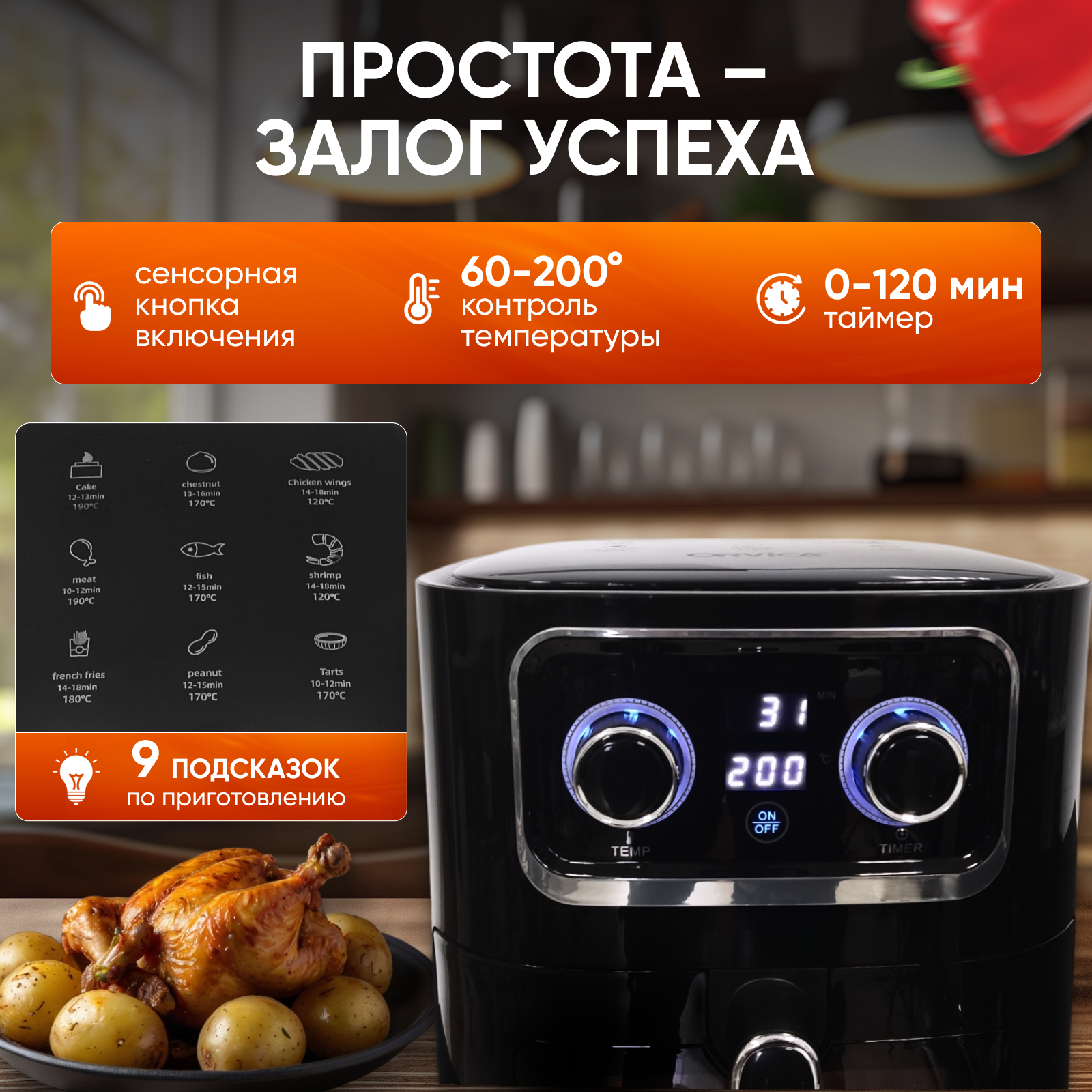 Отзывы на Аэрогриль электрический TIFFANY TF-162, 12 литров, мощность 2800 Вт, для дома, удобно брать на дачу, черный