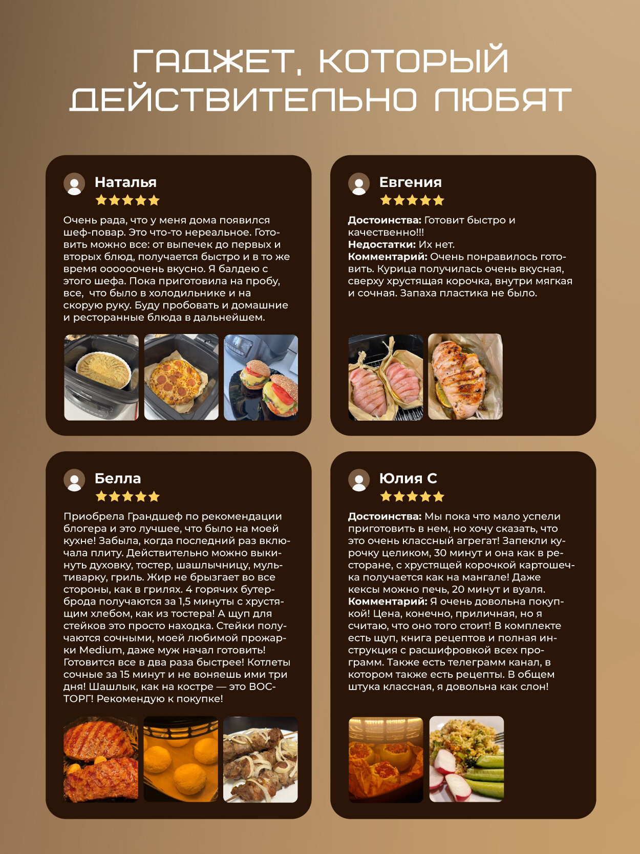 10 цен на Аэрогриль , гриль RETASTE "Грандшеф", 8л, 3100Вт, электронное управление, 14 программ