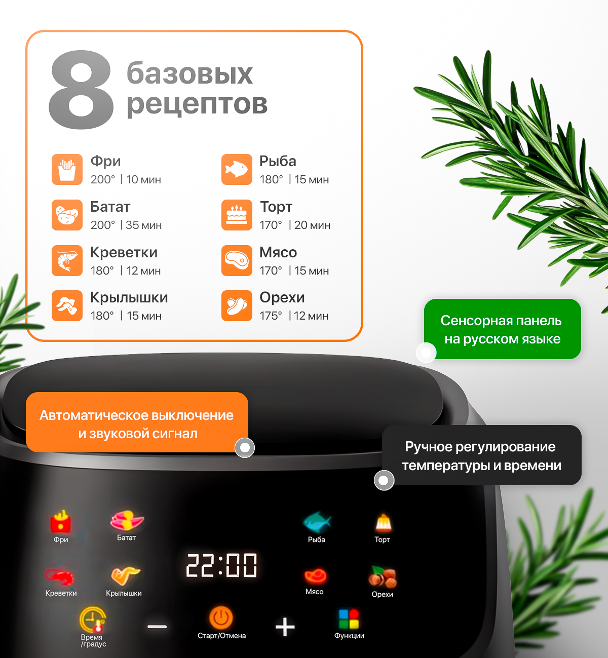 Аэрогриль BlackRED, 1350Вт, 5л, 3D-нагрев, 8 автоматических программ информация: