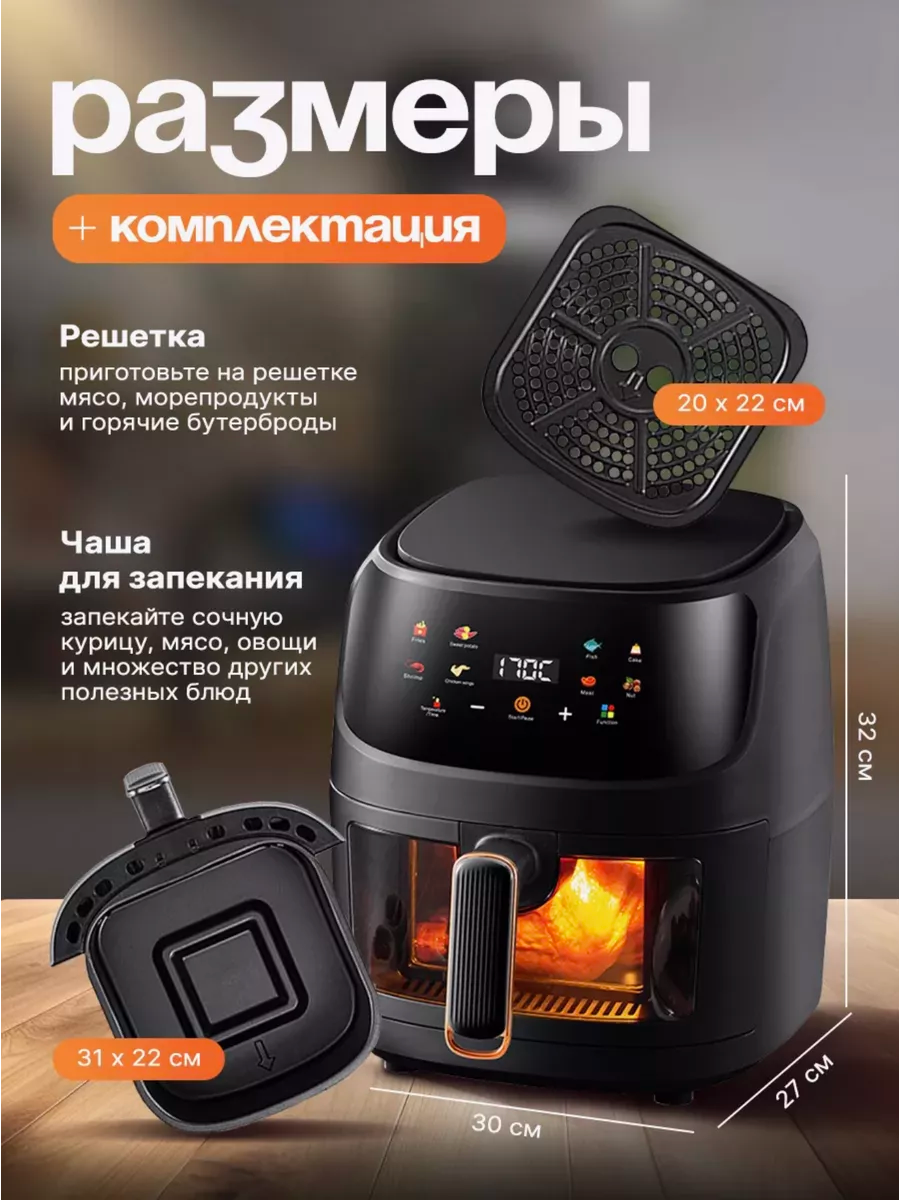 Аэрогриль, Аэрофритюрница электрическая/ 8 программ приготовления/объем 6 л /Мультипечь для кухни 1350 Вт, черный информация: