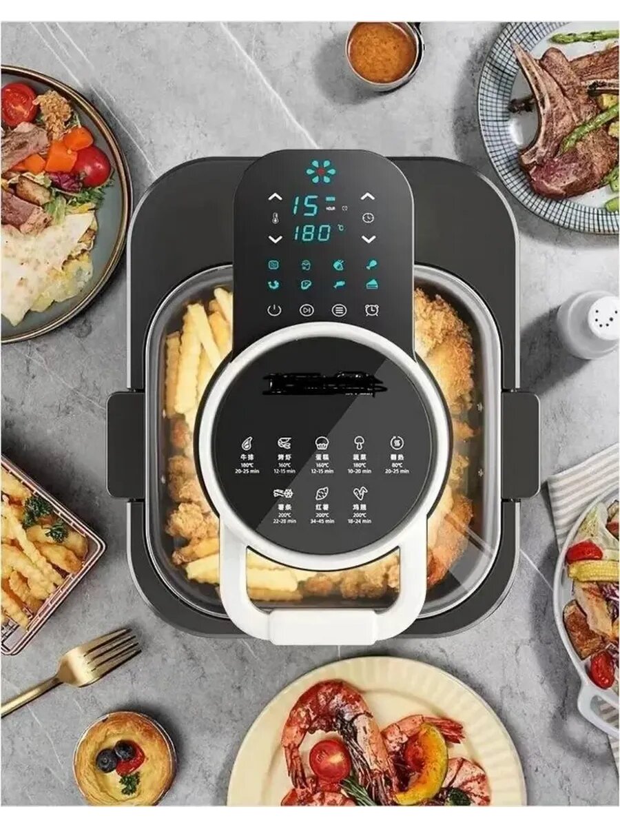 Аэрогриль Аэрогриль электрический 7 литров, с сенсорной панелью, 2400 Вт аэрогриль электрический, черный, серебристый
