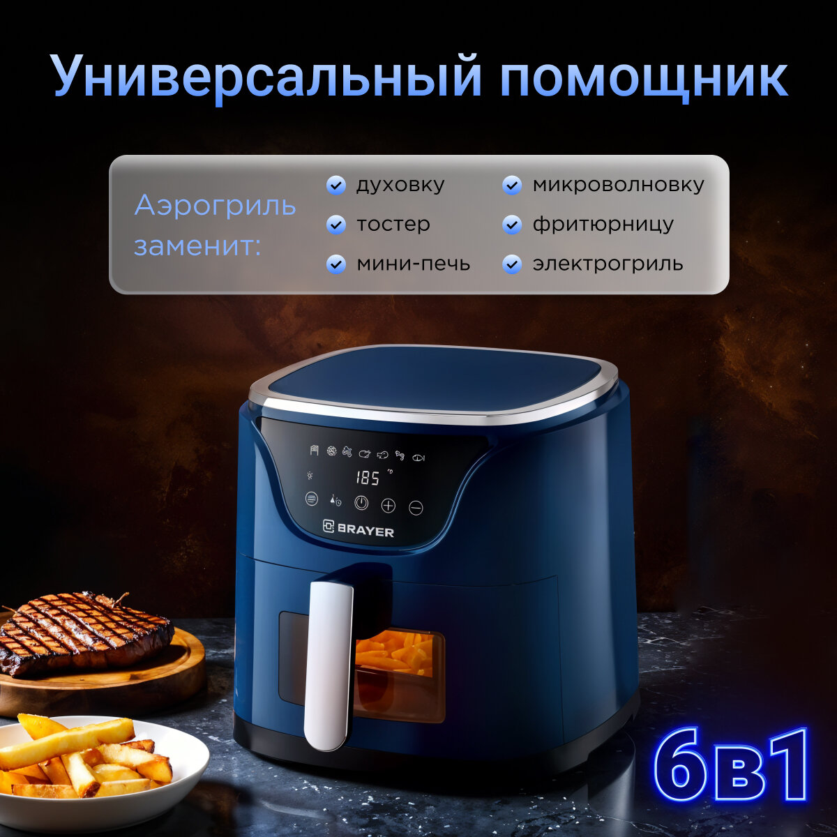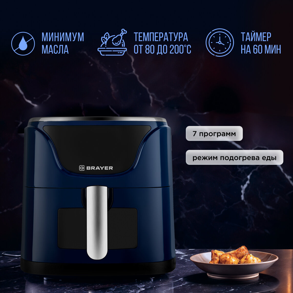 10 цен на Аэрогриль BRAYER BR2036, 1500Вт, 7 программ, 5л, таймер до 60мин, LCD-дисплей, синий