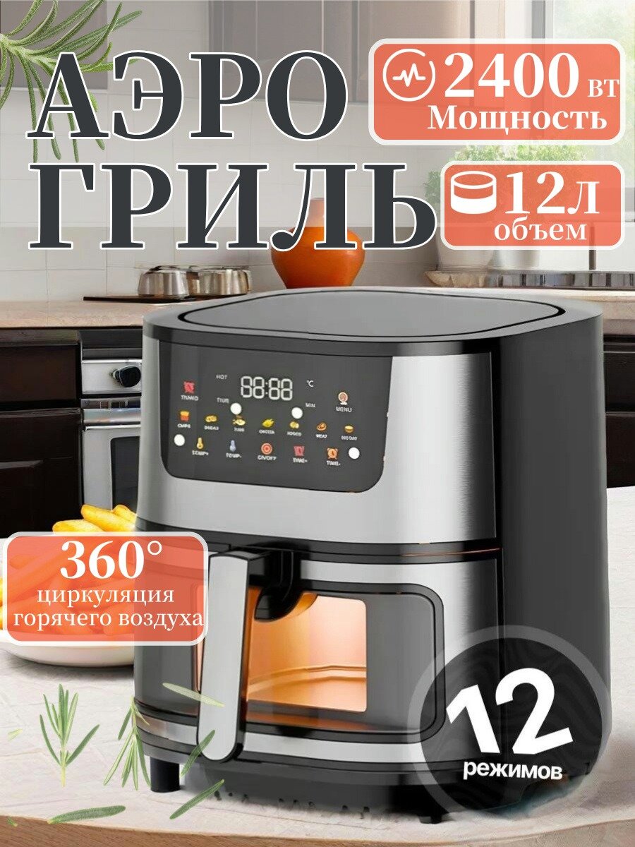 Отзывы на Аэрогриль электрическая 12 литров для дома, 12 меню, мощность 2400 BT, высокая температура до 200 °