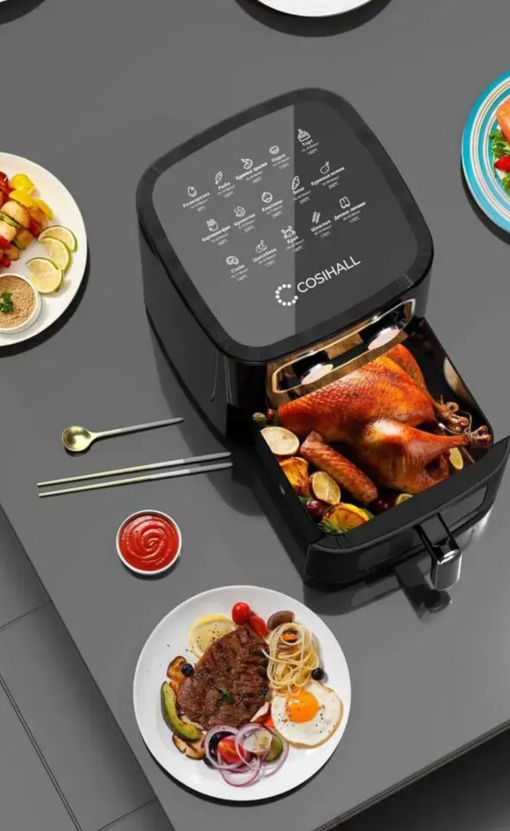 Аэрогриль Аэрогриль электрический 7 литров, с сенсорной панелью, 2400 Вт аэрогриль электрический, черный, серебристый