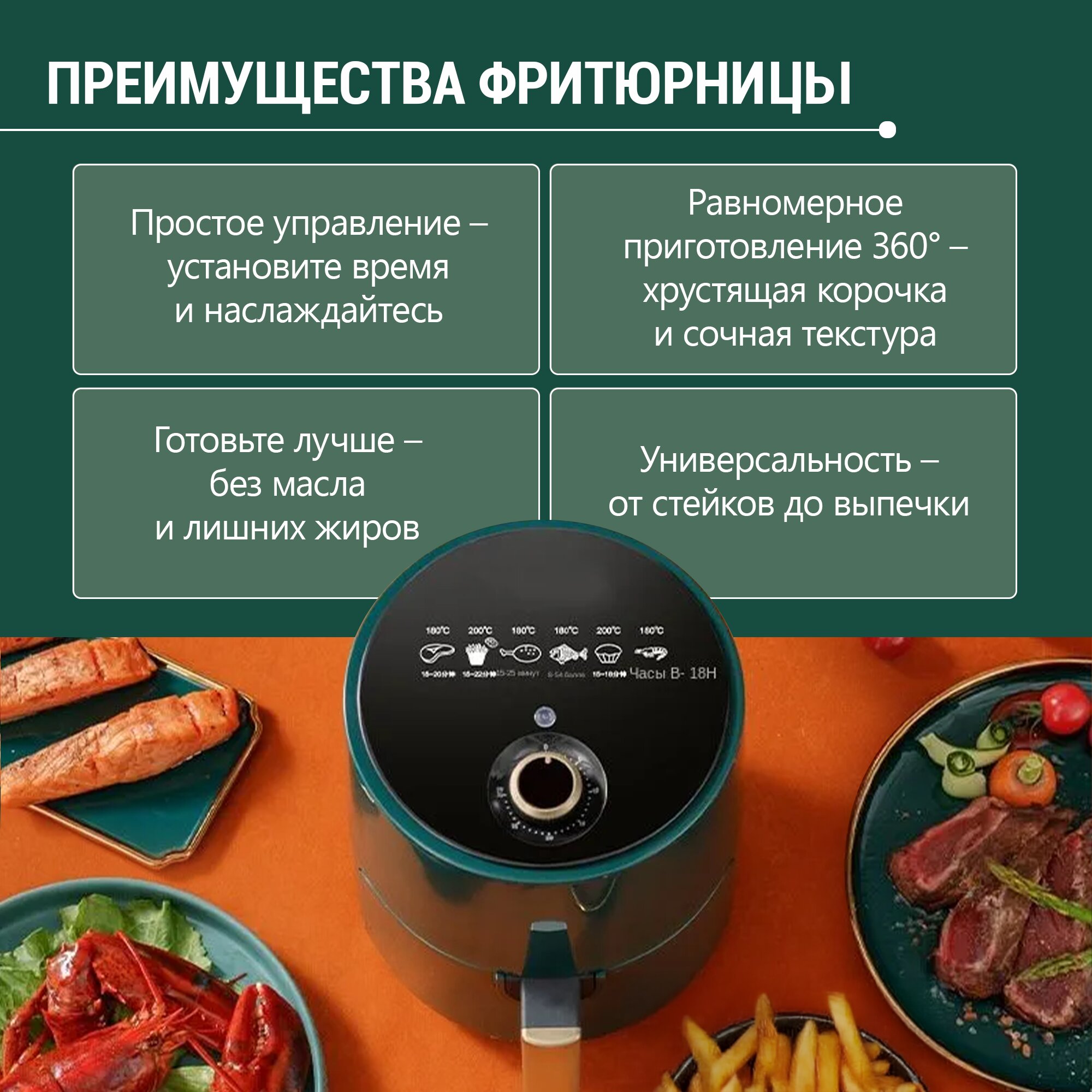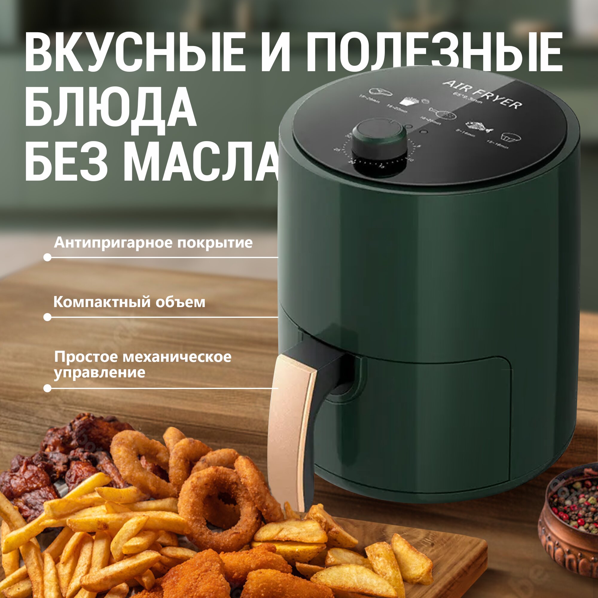 Отзывы на Аэрогриль электрический XIANKE 1200 Вт, объём 4 л, антипригарная чаша, таймер 30 мин, механическое управление, зелёный