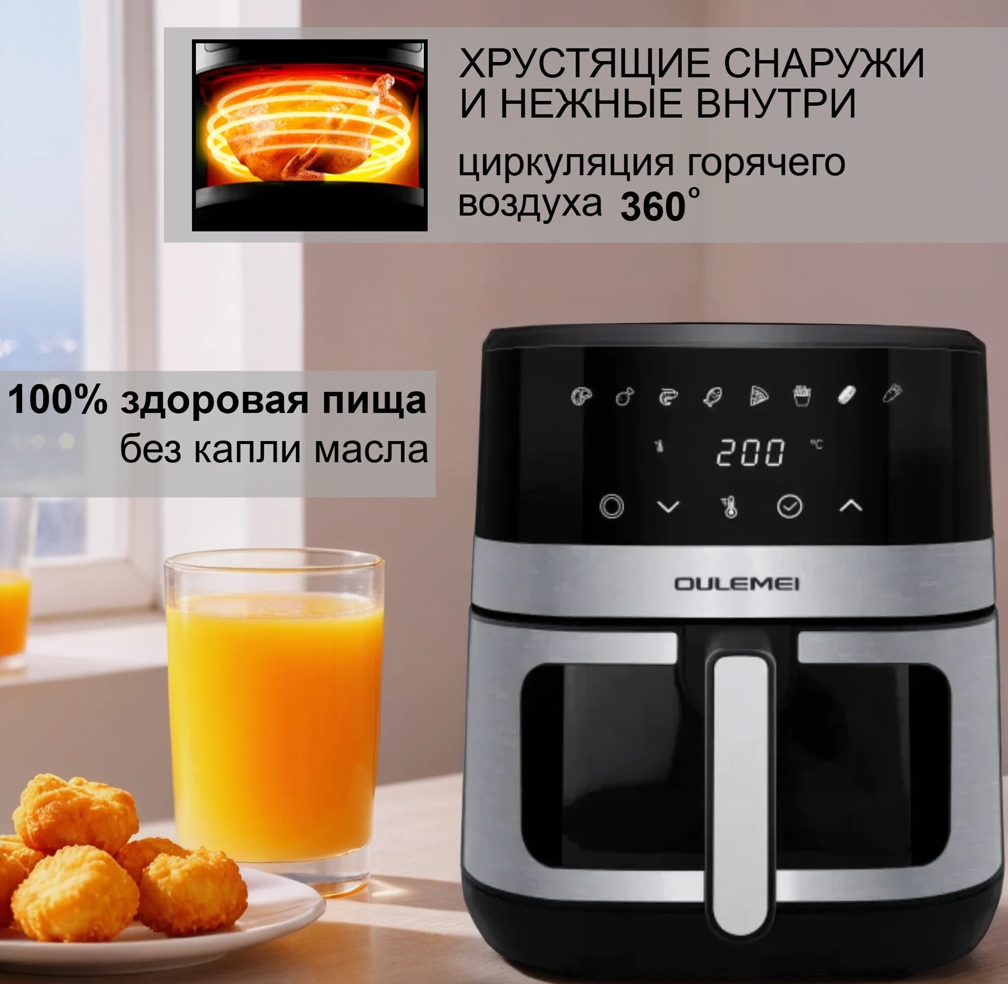 Аэрогриль Аэрогриль электрический 7 литров, с сенсорной панелью, 2400 Вт аэрогриль электрический, черный, серебристый
