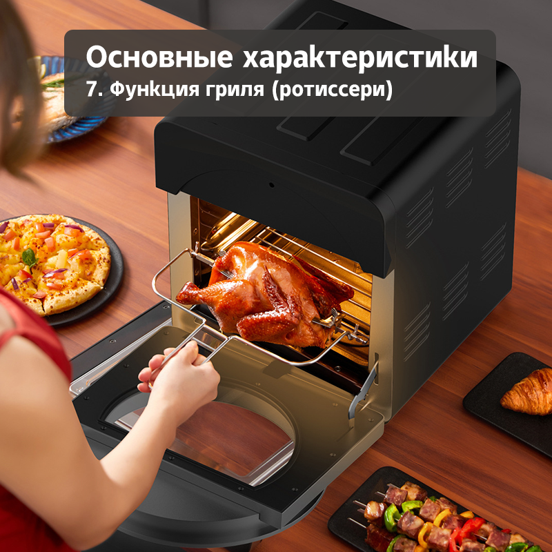 Аэрогриль электрический14 литров, сенсорная панель, 16 автоматических программ, 6 аксессуаров, Большое смотровое окно информация: