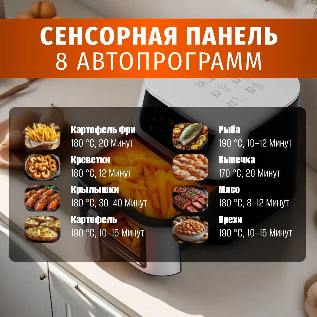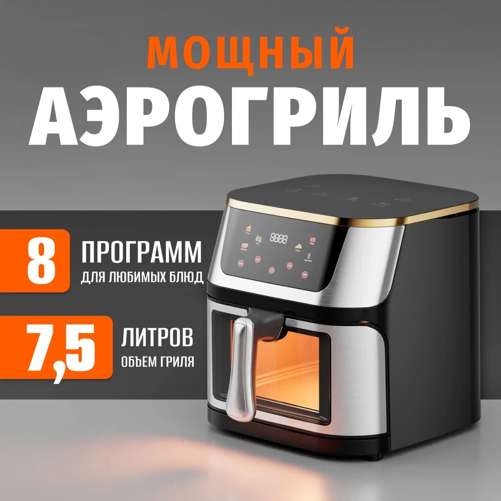 Аэрогриль Аэрогриль электрический 7 литров, с сенсорной панелью, 2400 Вт аэрогриль электрический, черный, серебристый