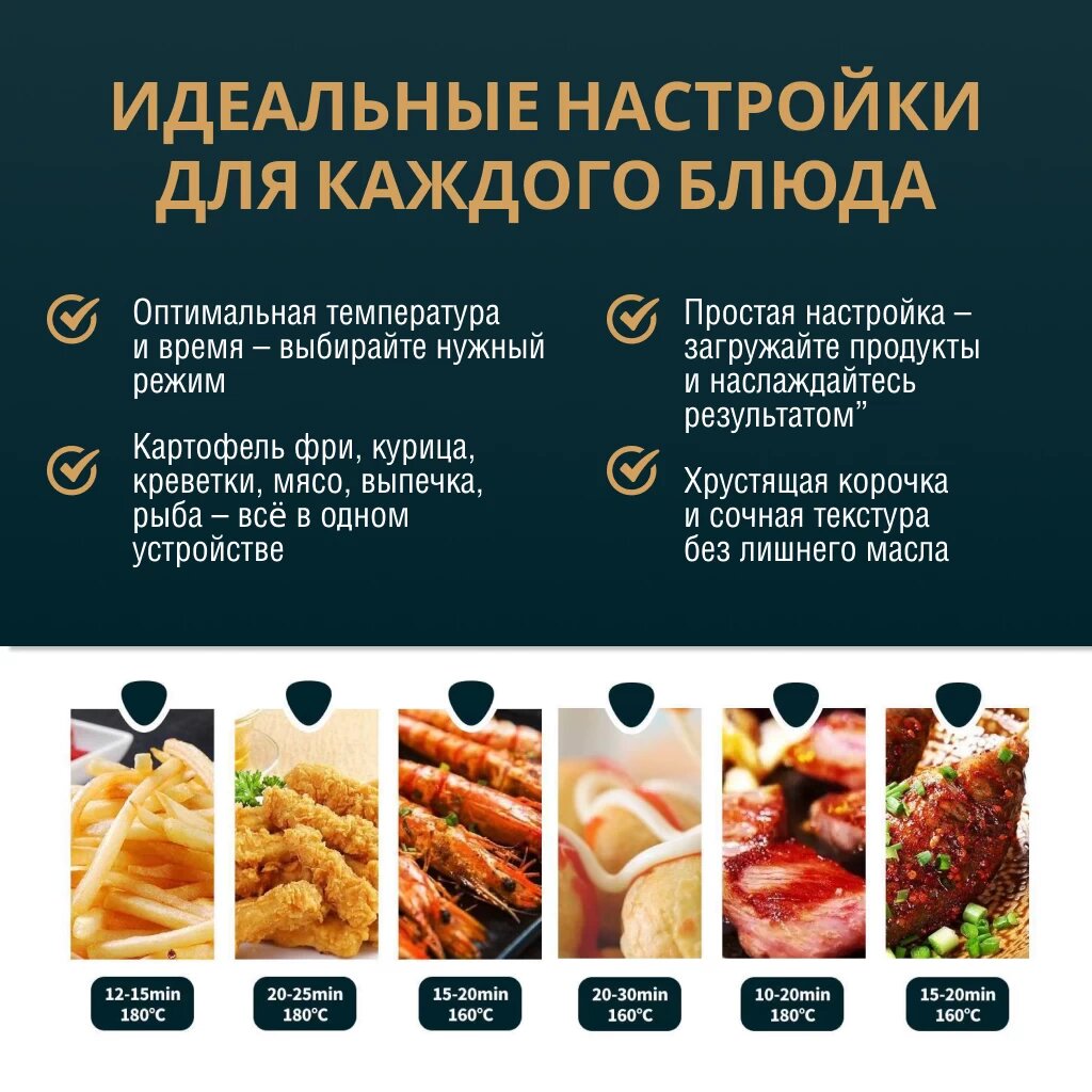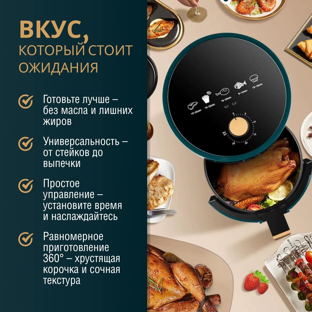 Аэрогриль Аэрогриль электрический 7 литров, с сенсорной панелью, 2400 Вт аэрогриль электрический, черный, серебристый