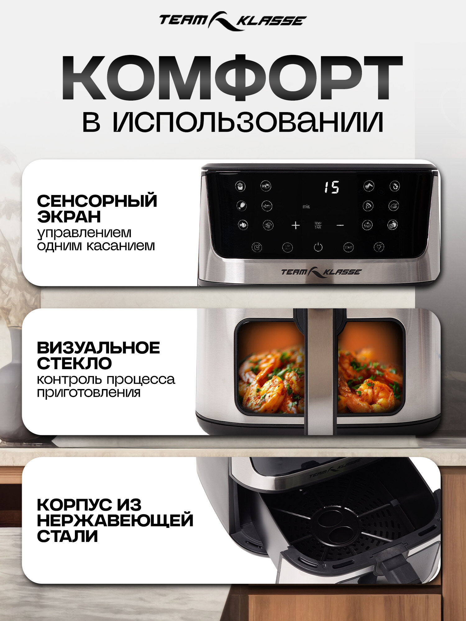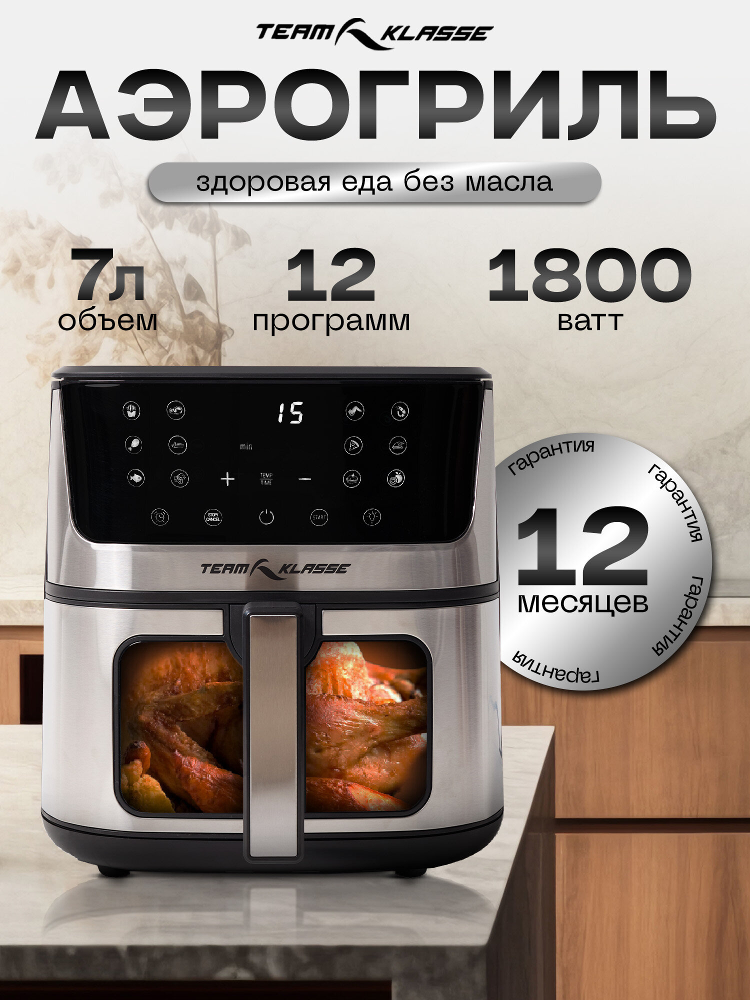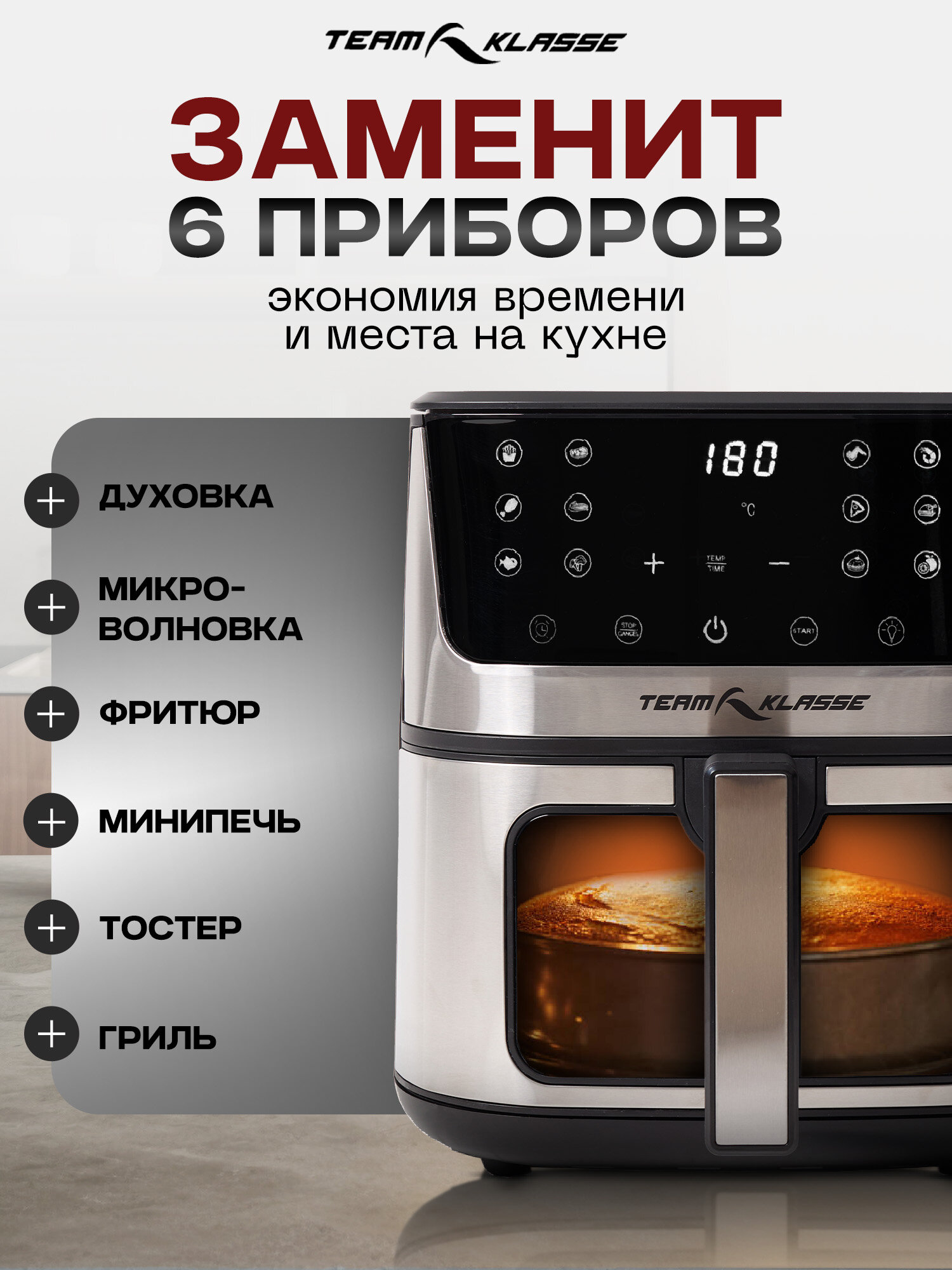 Аэрогриль Team Klasse 802T аэрофритюрница, решетка, 1700 Вт и 8 программ, объем 8 л, приготовление без масла до 200 градусов, с антипригарным покрытием, таймер, цвет черный 10 328 ₽