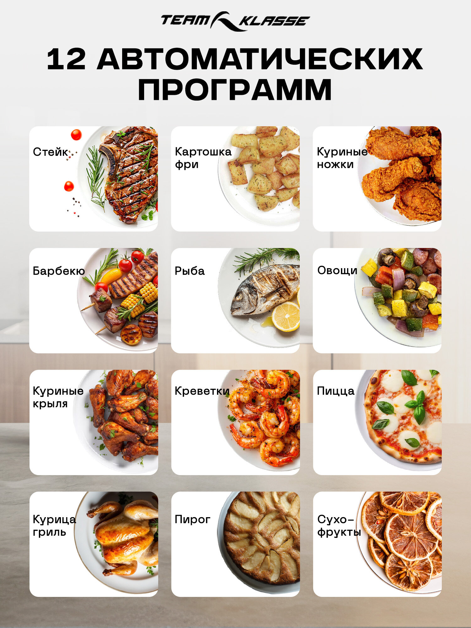 10 цен на Аэрогриль электрический Team Klasse HD-ZG050EB , аэрофритюрница, решетка, 1800 Вт и 12 программ, объем 7 л, приготовление без масла