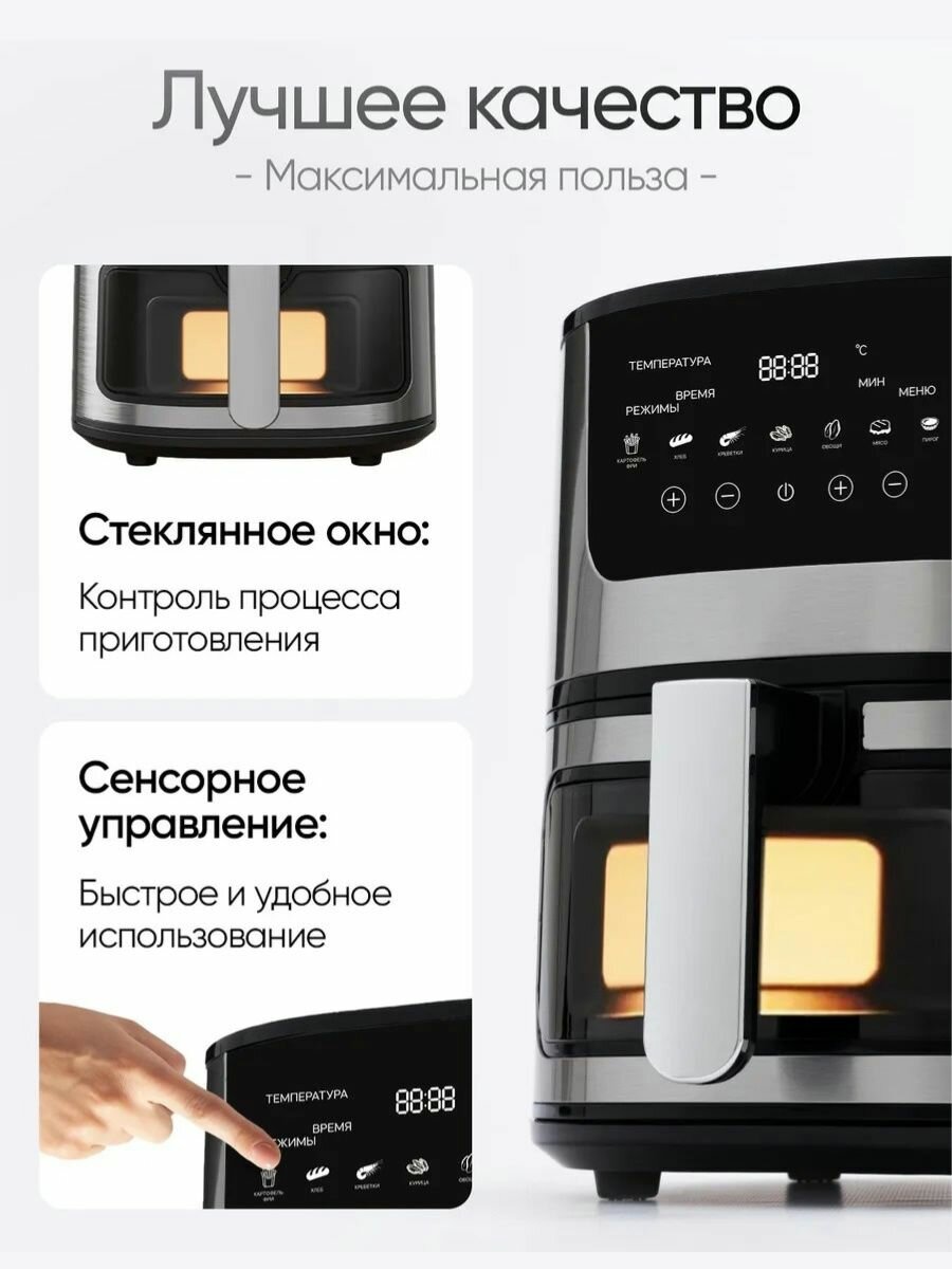 10 цен на Аэрогриль электрический 7 литров, Многофункциональность, Мощность 2400 Вт, Визуальное окно