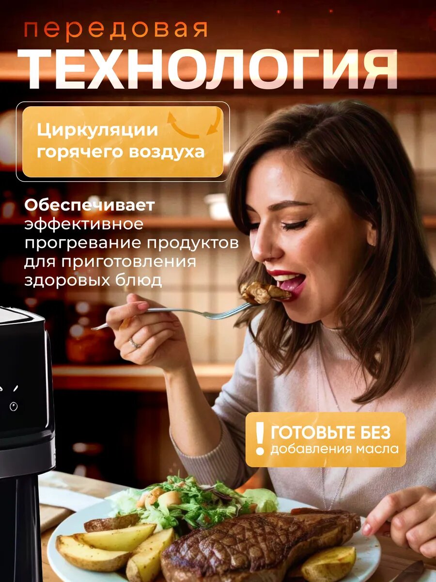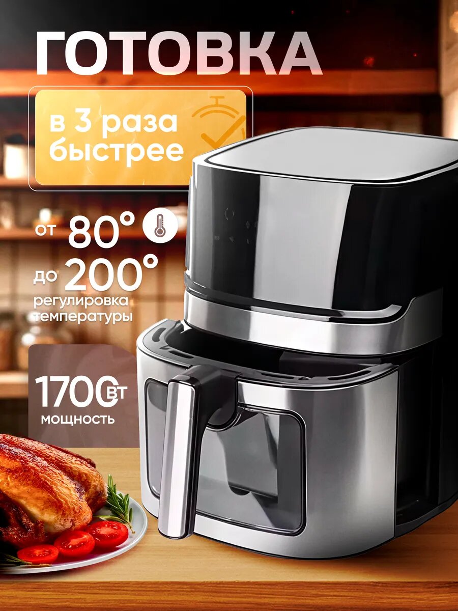 Аэрогриль Аэрогриль электрический 7 литров, с сенсорной панелью, 2400 Вт аэрогриль электрический, черный, серебристый