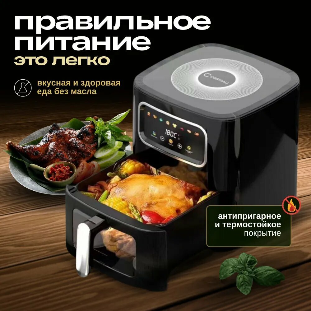 Аэрогриль Аэрогриль электрический 7 литров, с сенсорной панелью, 2400 Вт аэрогриль электрический, черный, серебристый