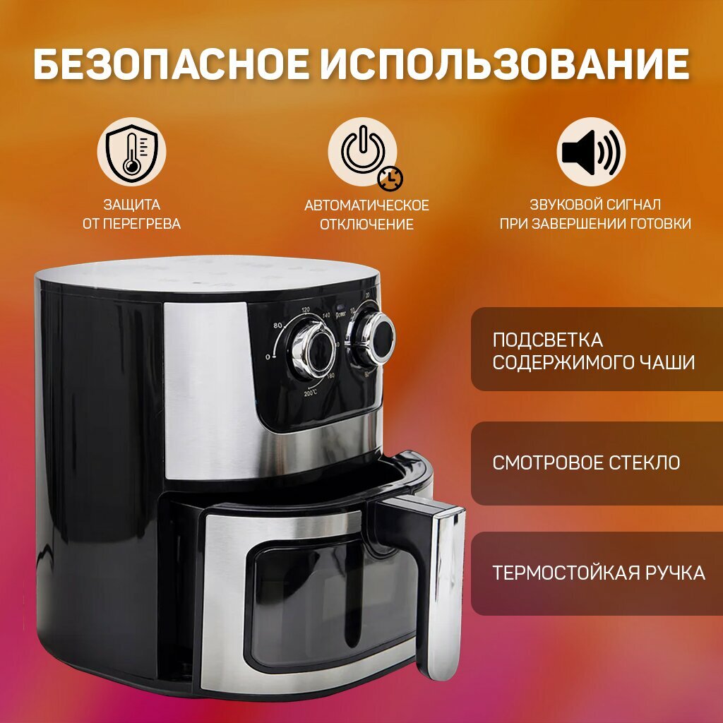 Аэрогриль Аэрогриль электрический 7 литров, с сенсорной панелью, 2400 Вт аэрогриль электрический, черный, серебристый