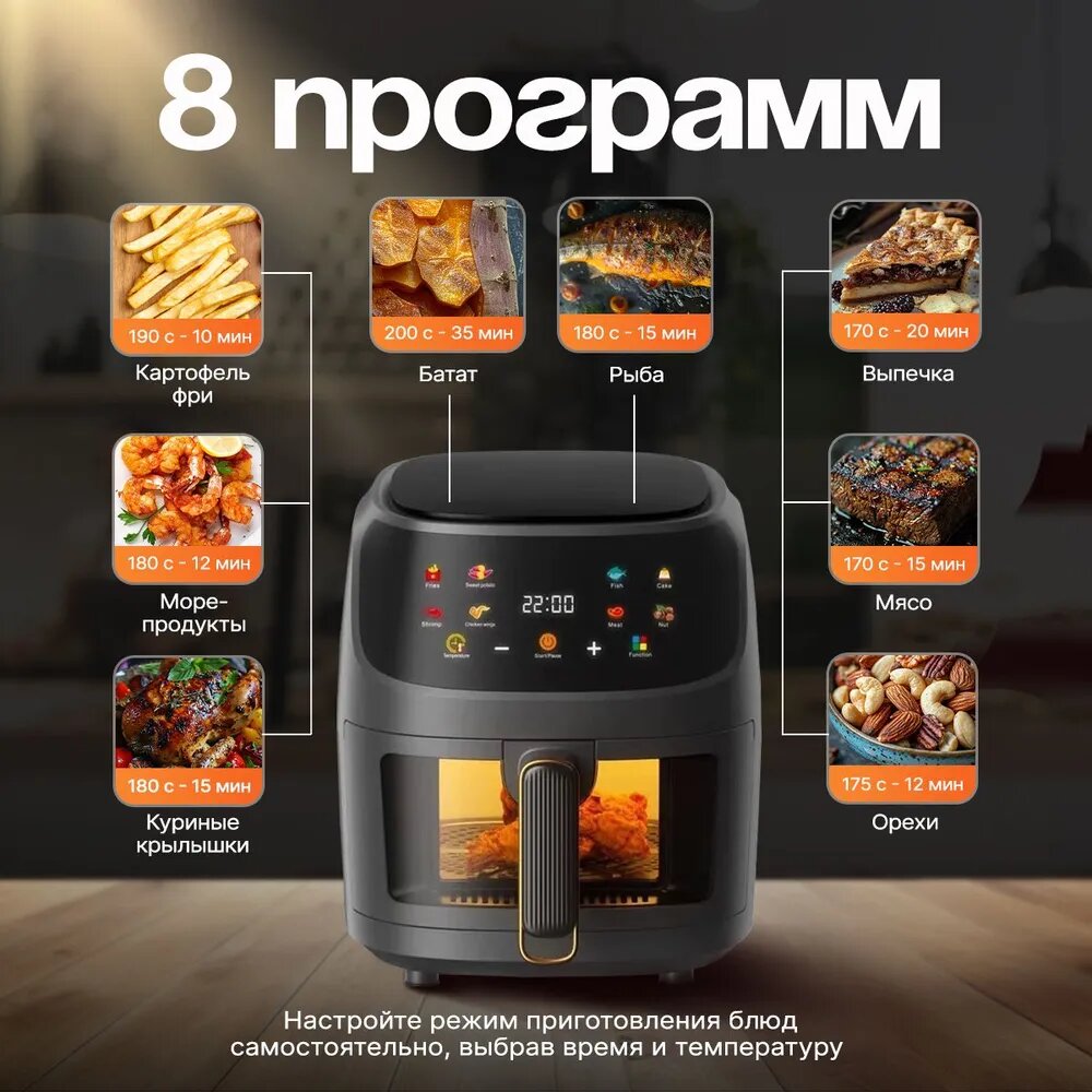 Отзывы на Аэрогриль электрический 8 в 1 с решеткой черный 1350w 8 литров