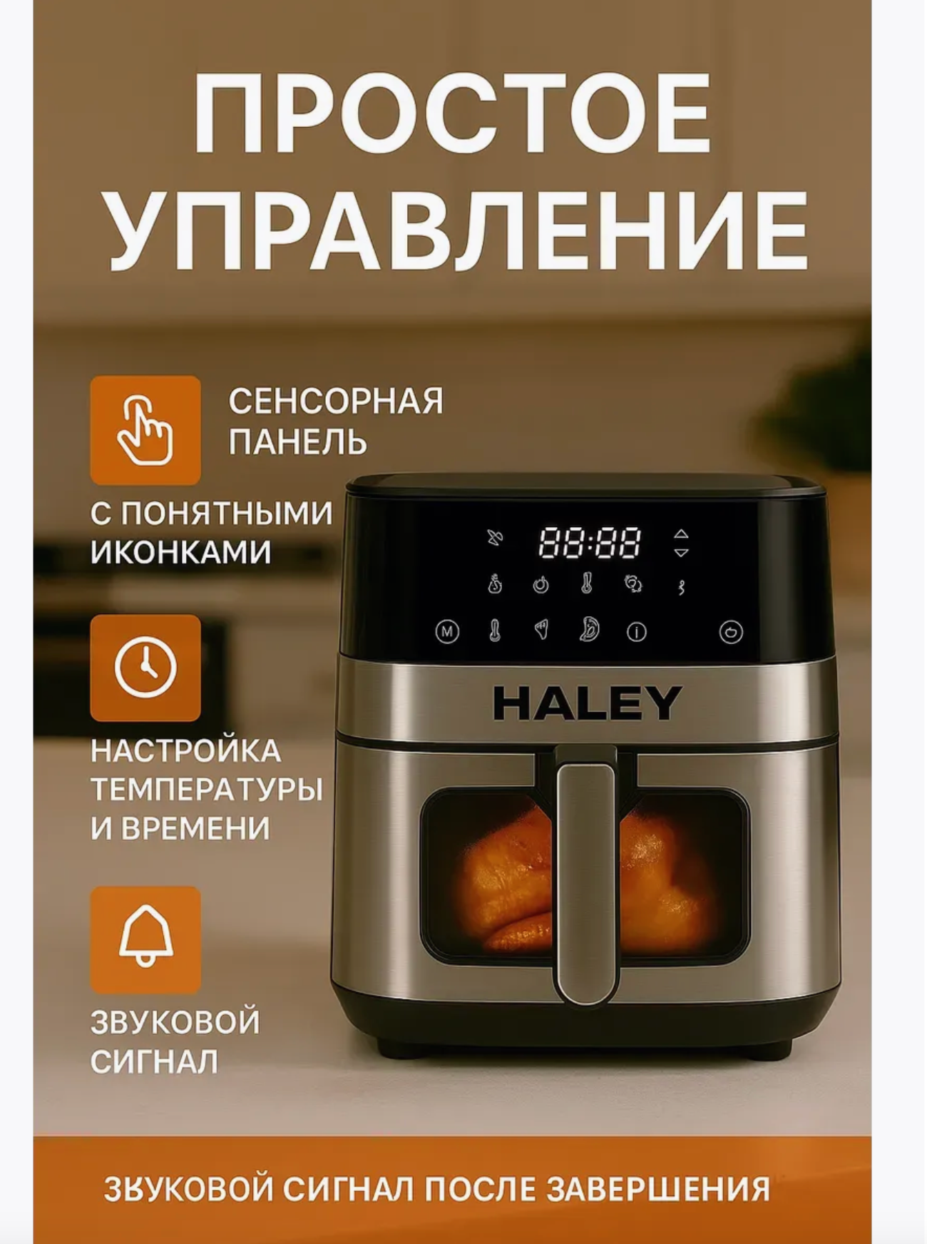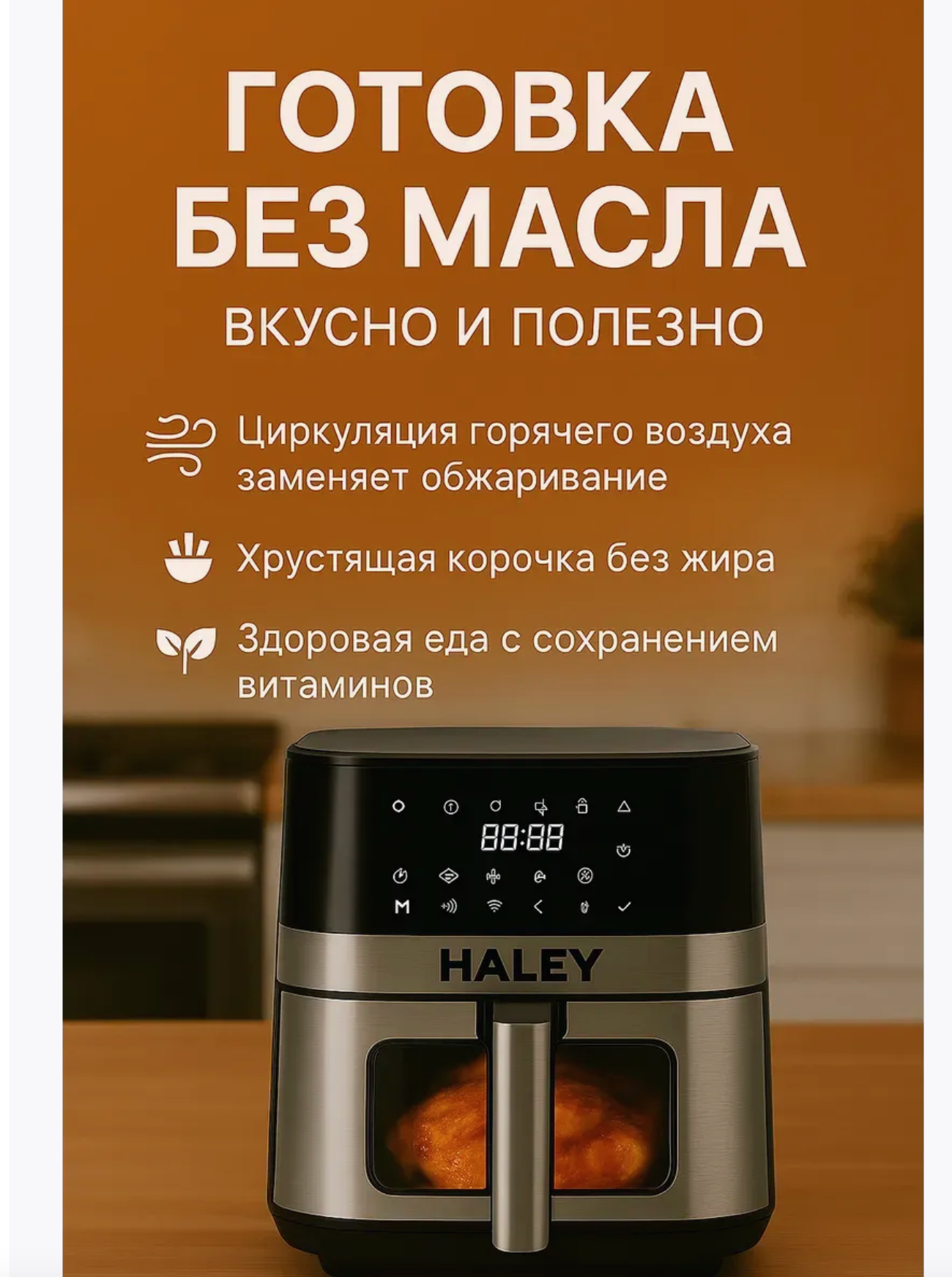 10 цен на Аэрогриль Haley HY-2512, мощность 2 кВт, чаша 7 л, 3D циркуляция воздуха