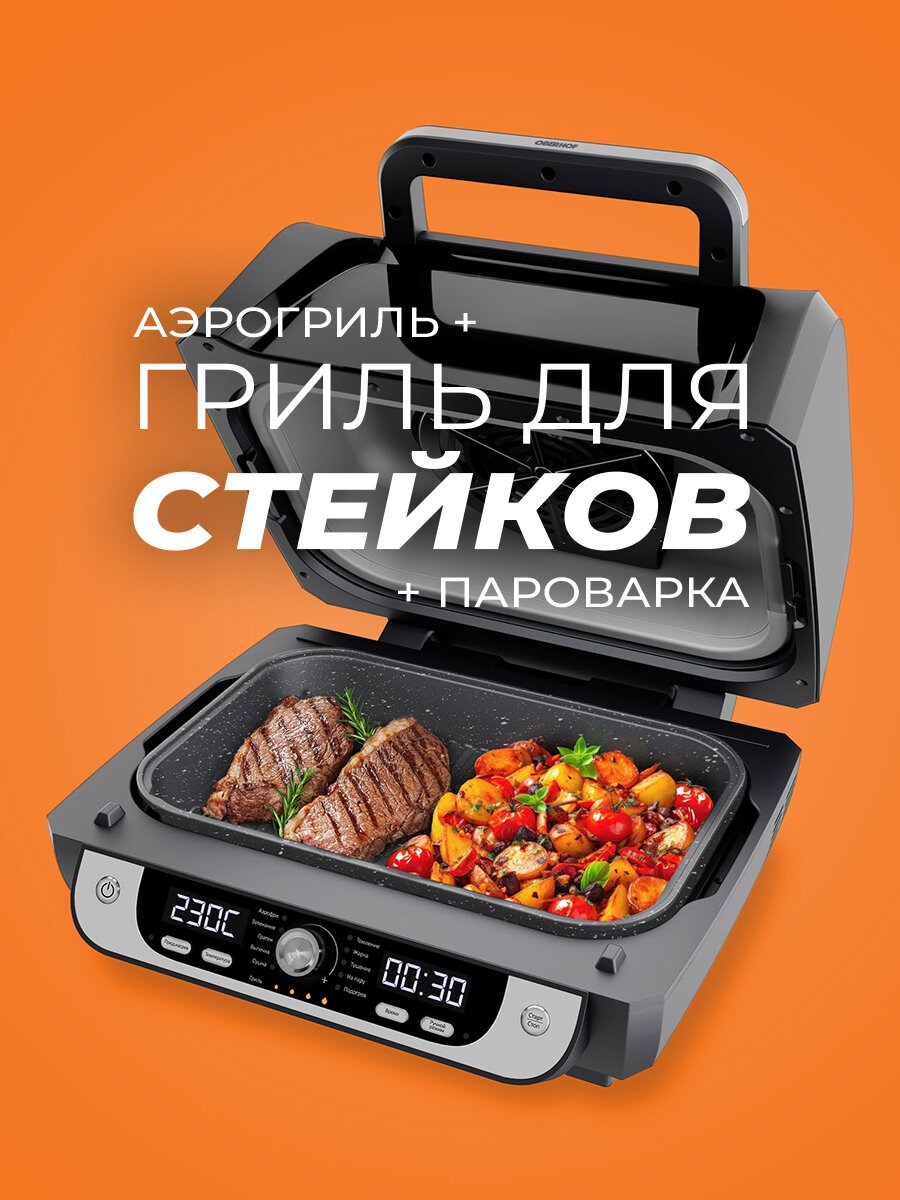 10 цен на Аэрогриль Oberhof "Braten" X25, 7в1, черный, мощность 1700Вт, объем чаши 10л