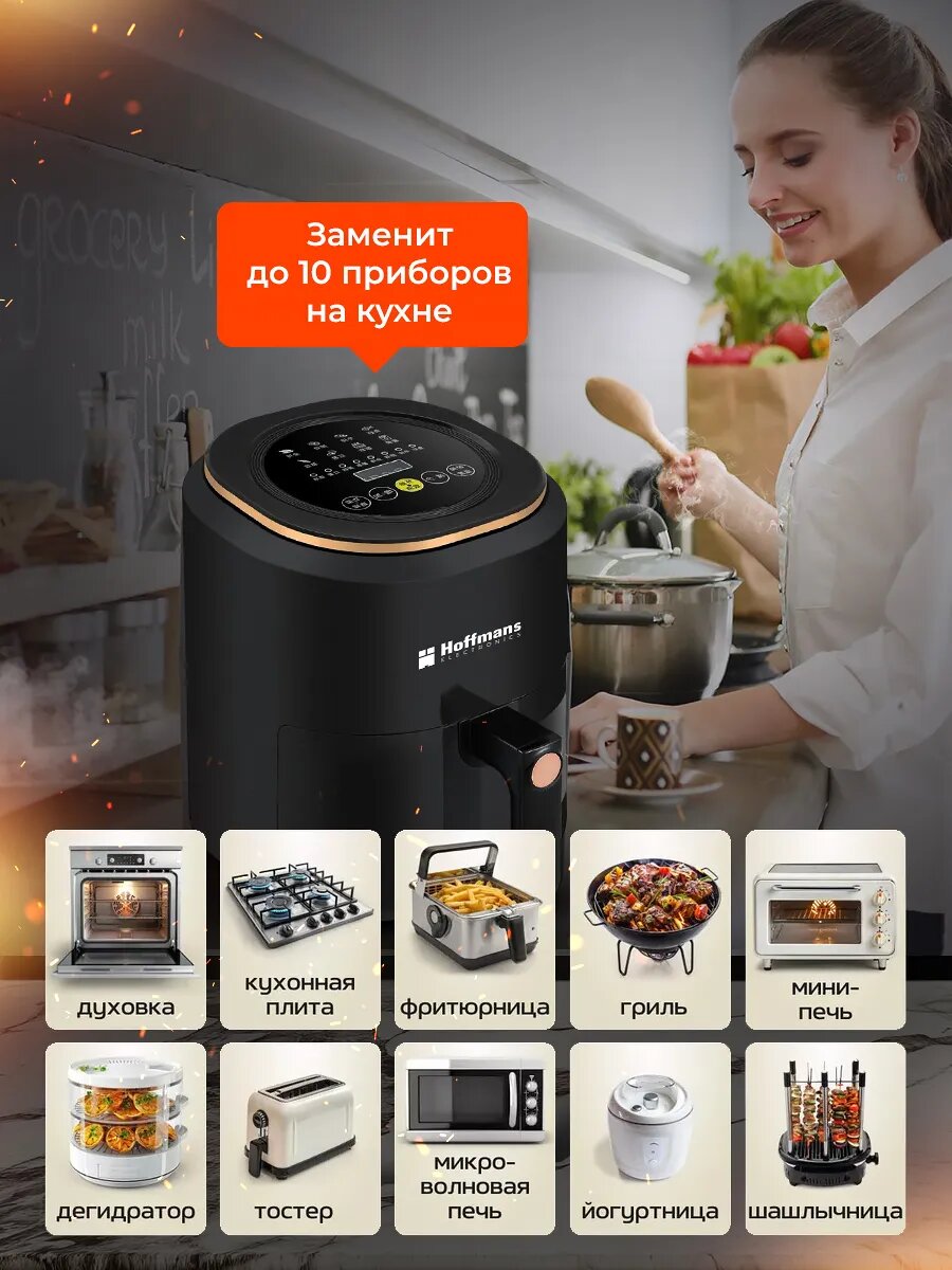 10 цен на Аэрогриль электрический 7,5 литров 2400вт для дома с решеткой 8 программ