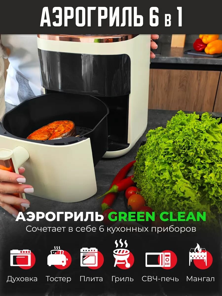 10 цен на Аэрогриль электрический 6 л, 8 программ, книга рецептов GREEN CLEAN