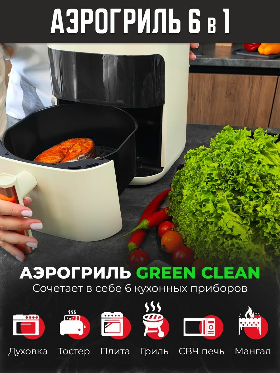 10 цен на Аэрогриль электрический белый 4,5 л, 8 программ, книга рецептов GREEN CLEAN