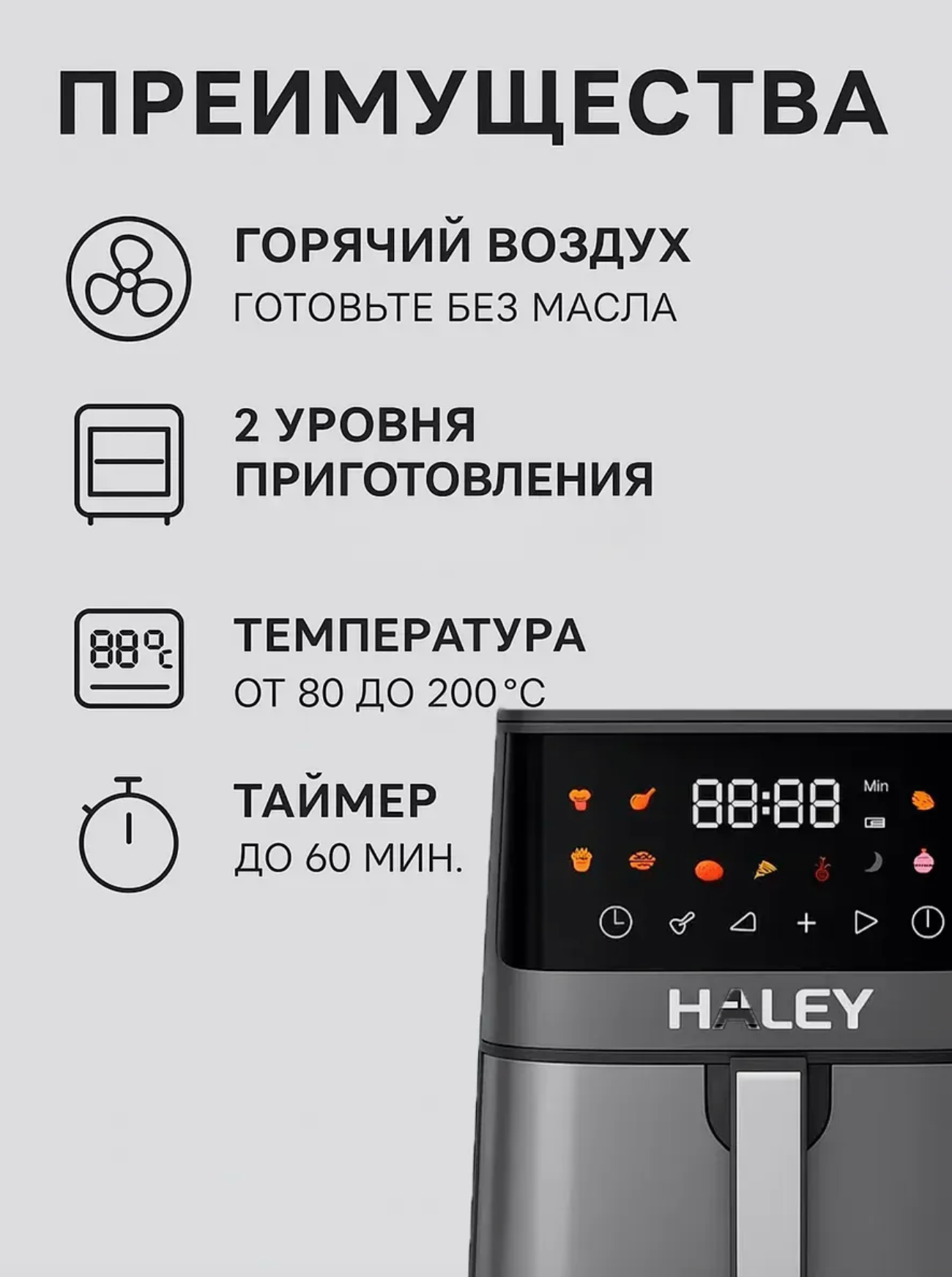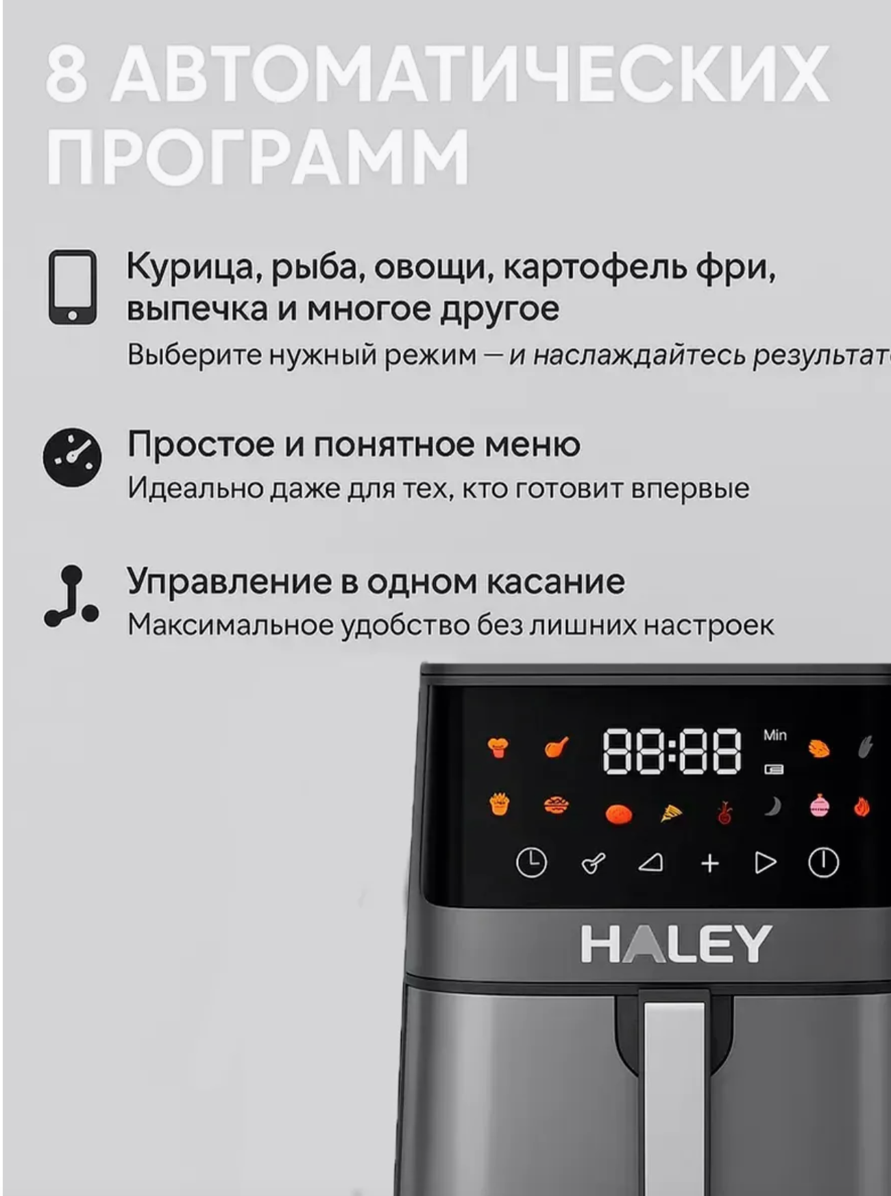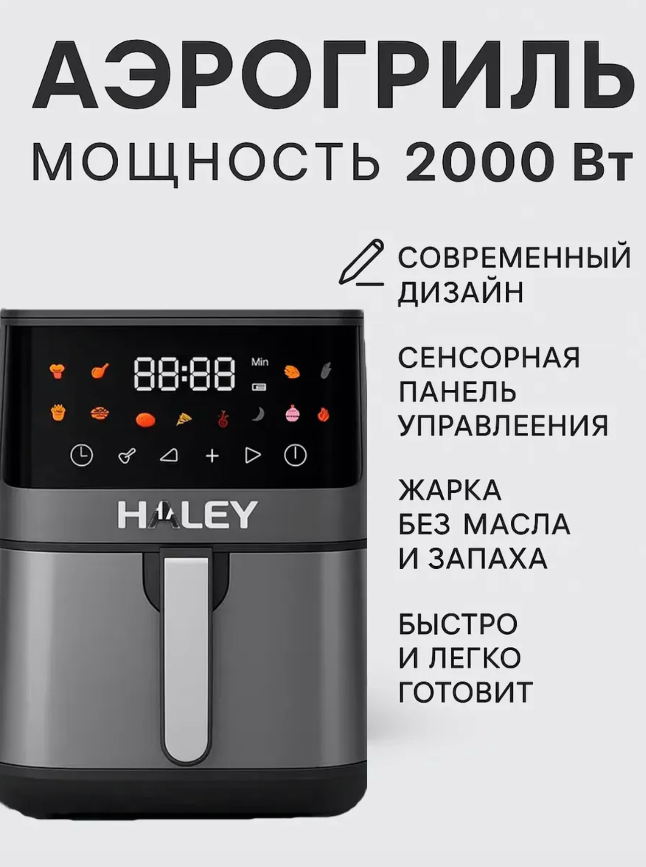 10 цен на Аэрогриль Haley HY-2531, 2000Вт, 7л, 8 автоматических программ