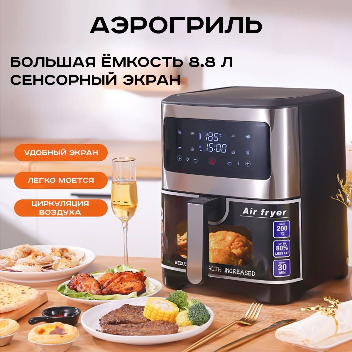Аэрогриль Аэрогриль электрический 7 литров, с сенсорной панелью, 2400 Вт аэрогриль электрический, черный, серебристый