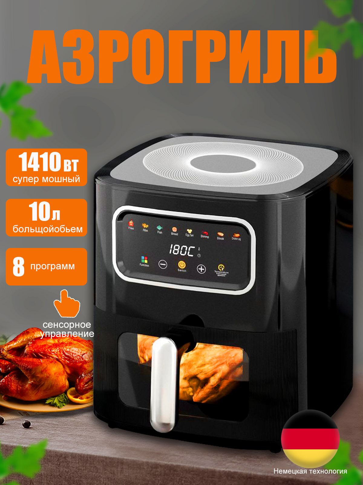 Отзывы на Электрический аэрогриль, 8-дюймовая аэрофритюрница, визуальное окно, сенсорный экран, 10 л