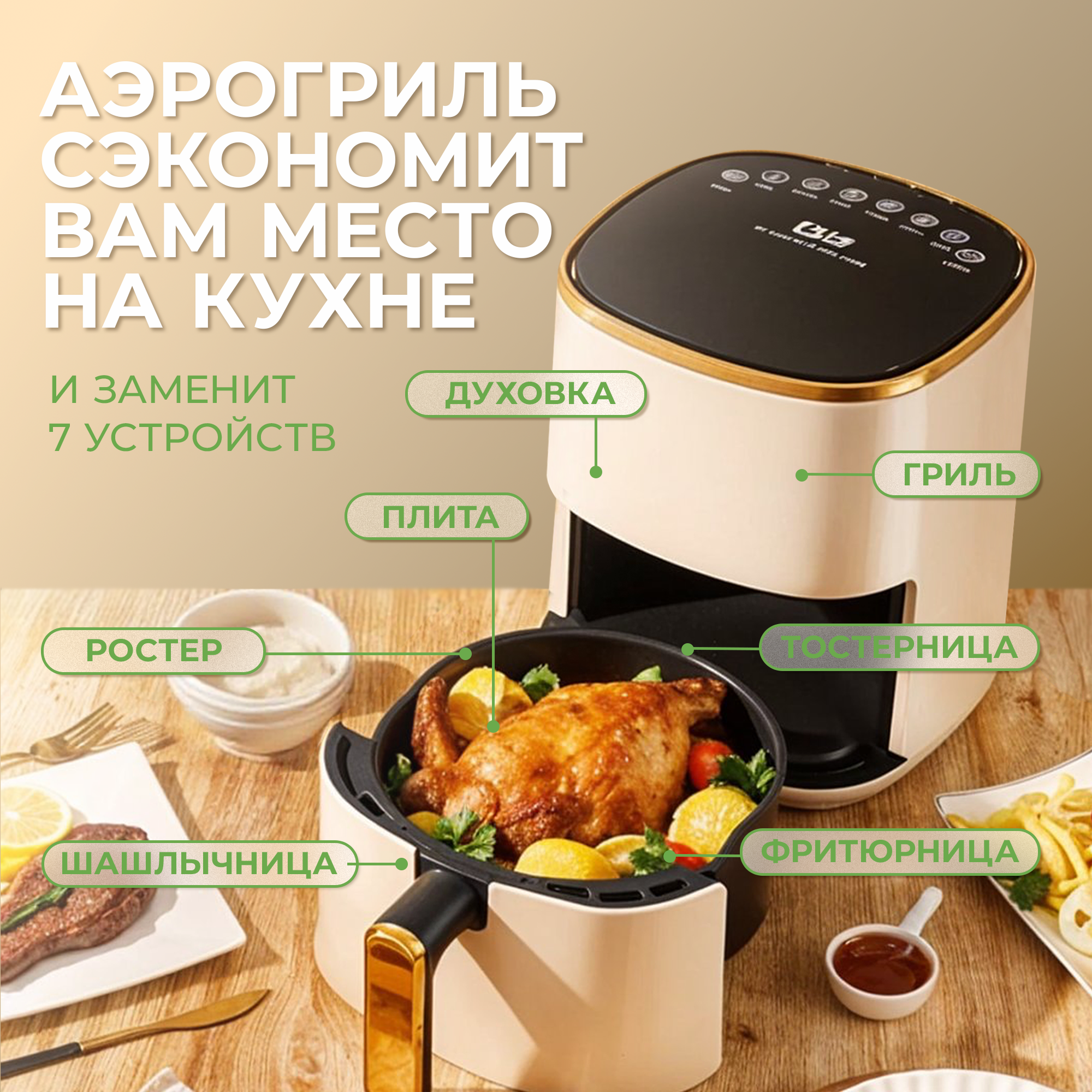 10 цен на Электрический аэрогриль Camel Air Fryer 5 л – Многофункциональная аэрогрильница для здорового питания