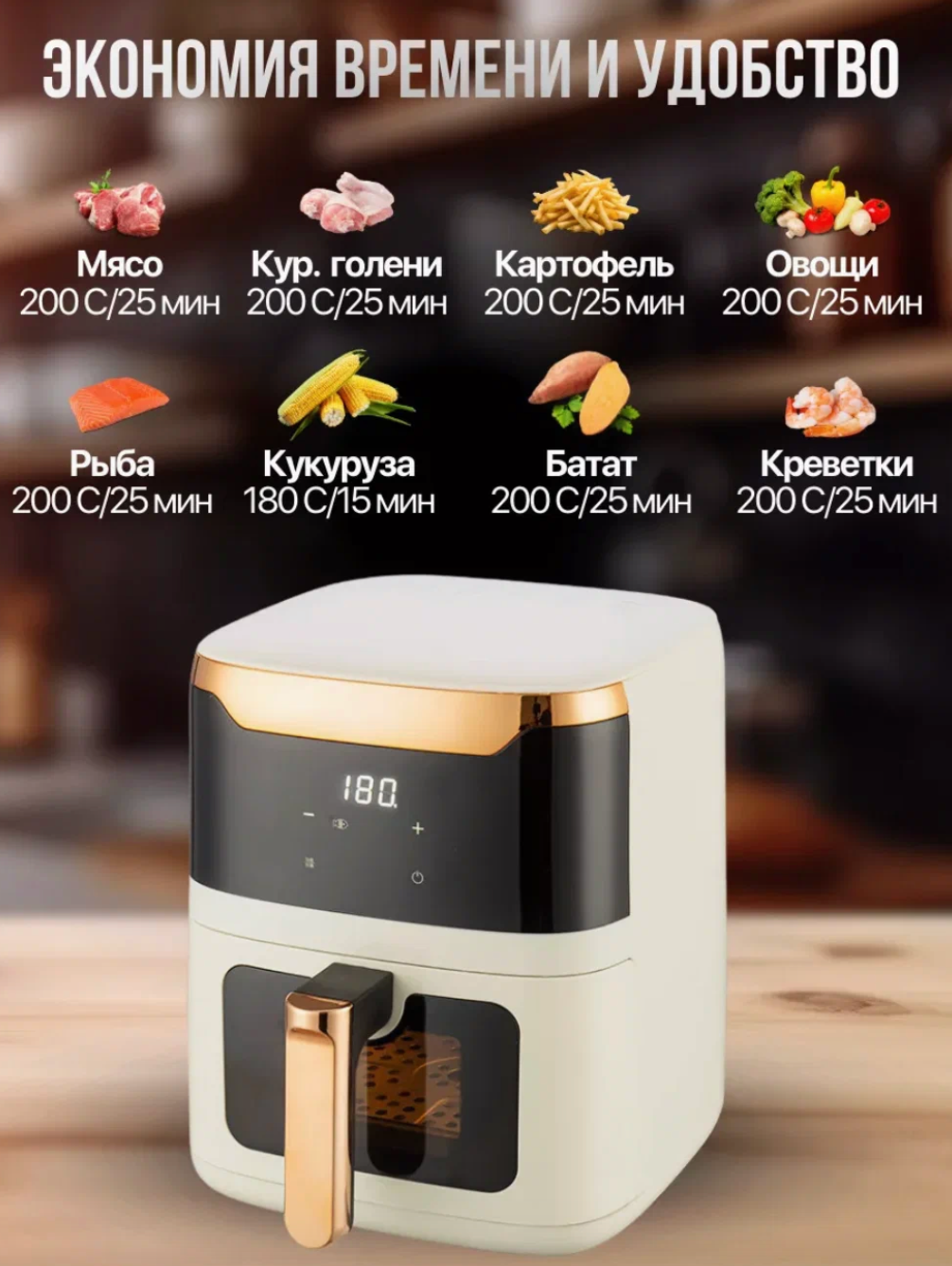 Отзывы на Электрический аэрогриль, аэрогриль с сенсорным управлением, 5,5л, 8 программ