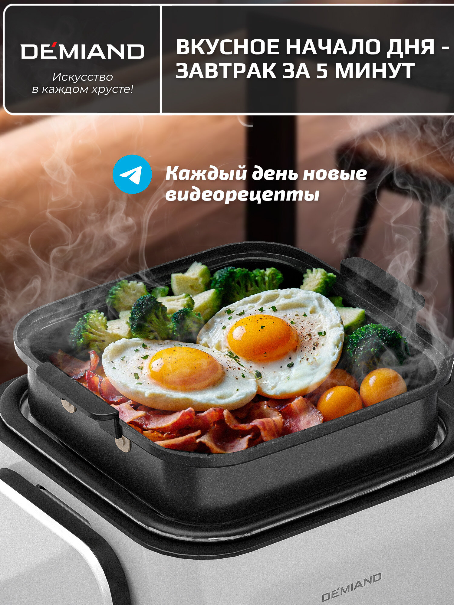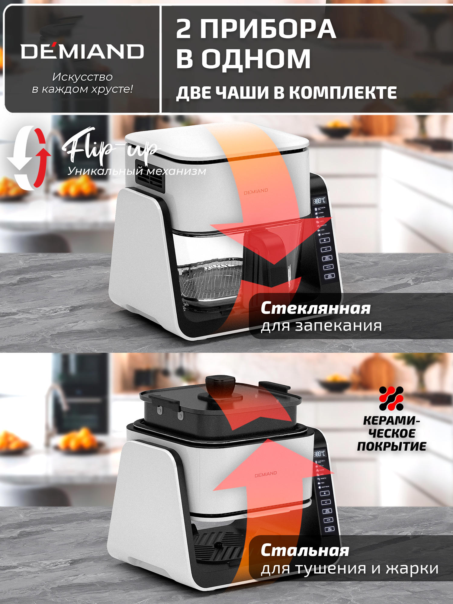 Комбинированный Аэрогриль Трансформер DEMIAND COMBO с уникальным механизмом FLIP-UP, белый информация: