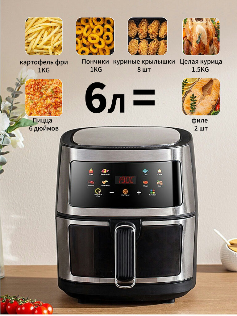 Отзывы на Аэрогриль электрический 8 литров, мощность 1350W, 10 кнопок предустановленного меню